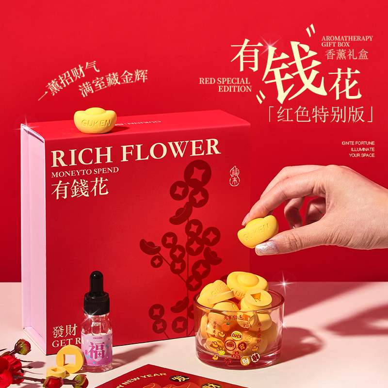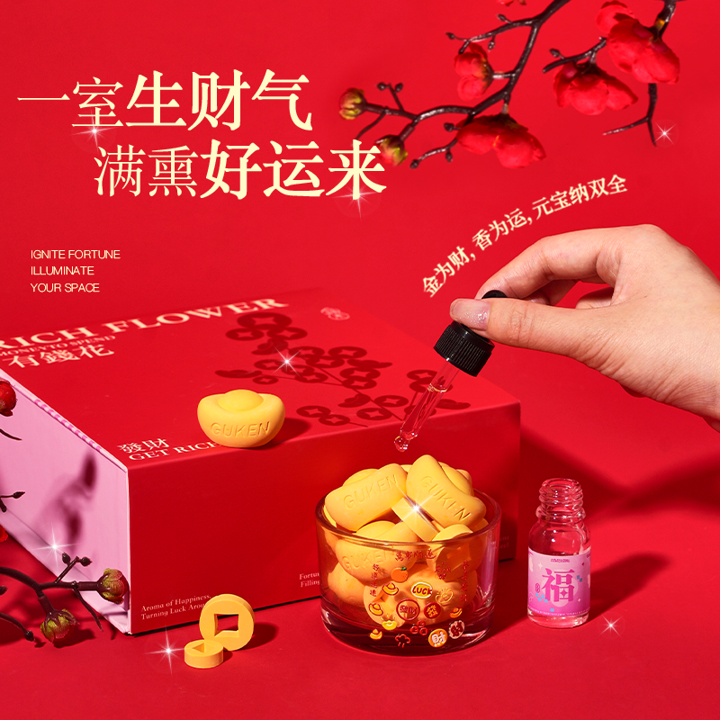 福来运转石膏扩香石红色礼盒装室内摆件客厅扩香礼物香氛精油玄关