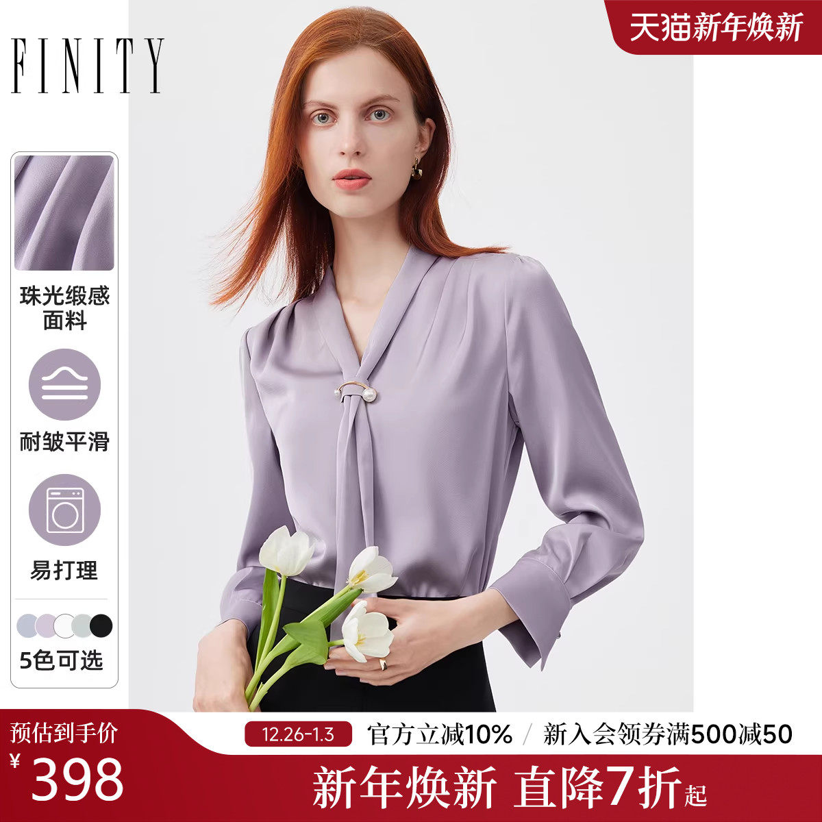 FINITY菲妮迪衬衫2025秋新款紫色飘带领设计感高端通勤衬衣女上衣