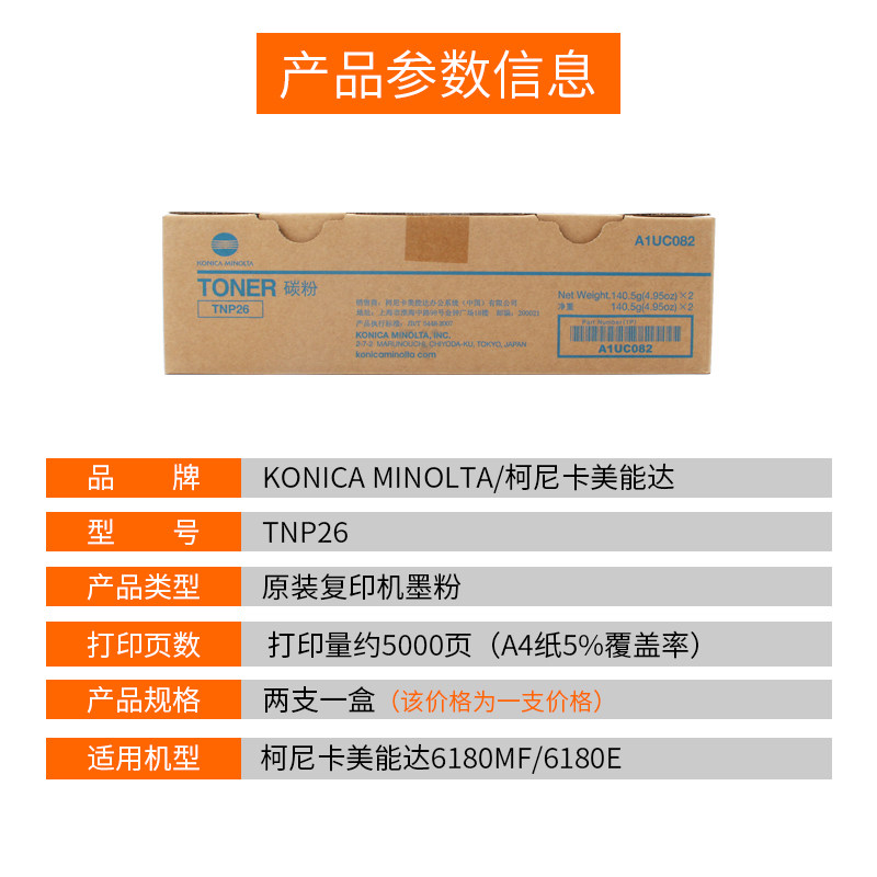 原装KONICA MINOLTA 柯尼卡美能达 TNP26 粉盒 6180MF/6180e复印机 墨粉仓 碳粉盒 A1UC082 墨盒 耗材
