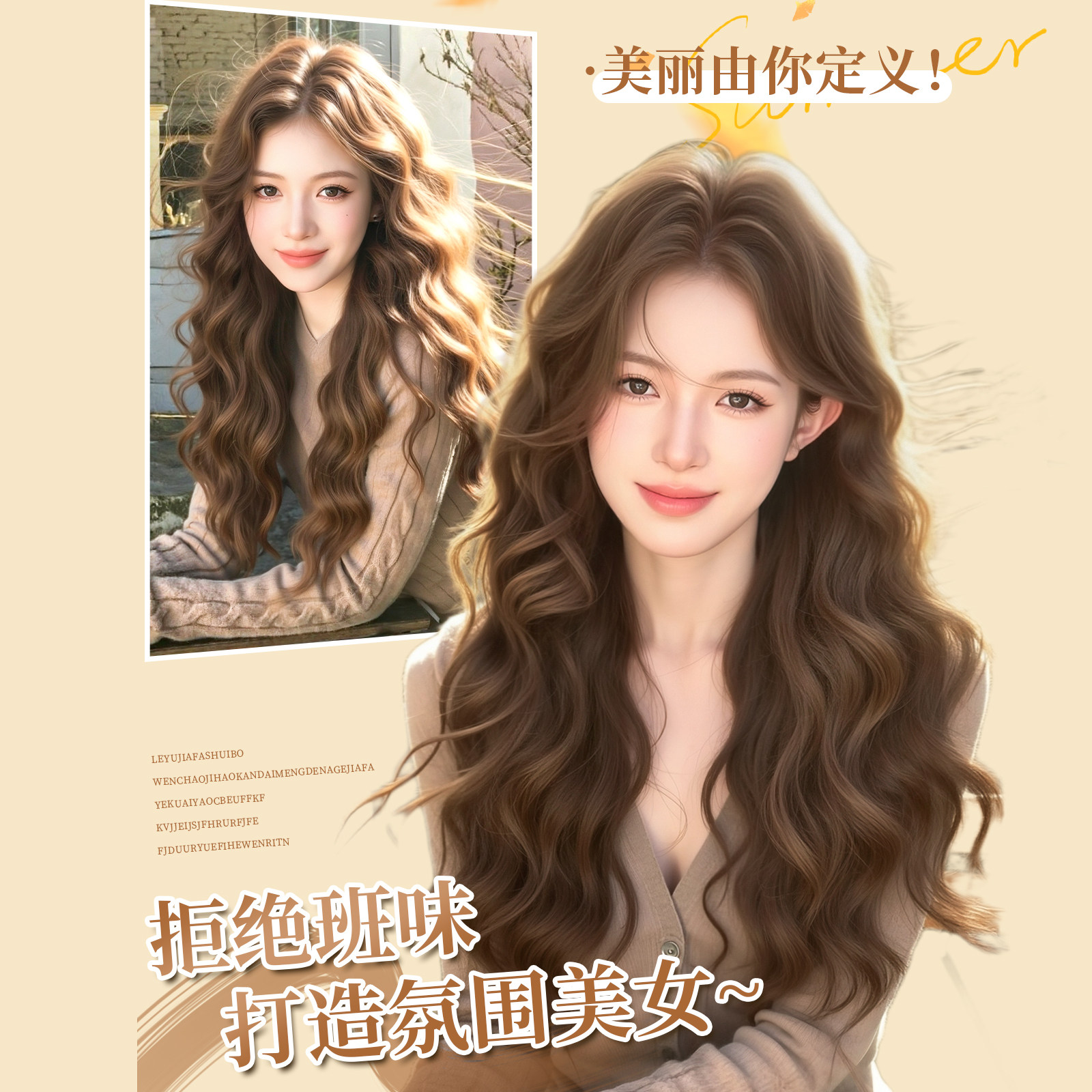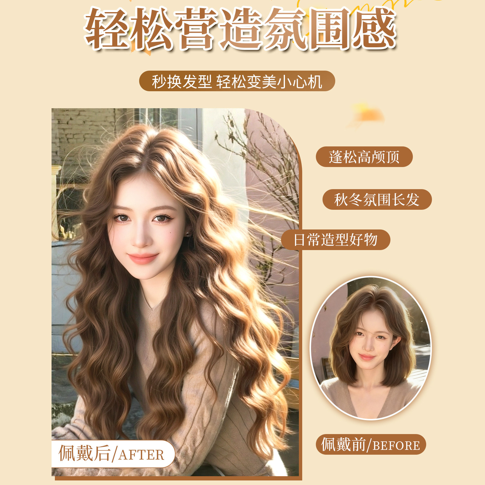 假发全头套女仿真发蓬松精修水波纹蛋蛋长卷发慵懒氛围日常假发套