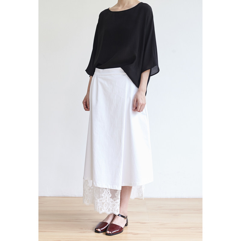 清仓/小众复古纯棉不规则白色半身裙 小鱼蕾丝拼接气质百搭A字裙