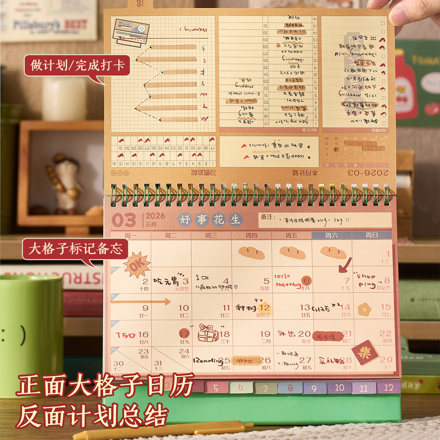 2026年台历创意简约桌面摆件马年可爱自律打卡日历本计划本ins风2025年考研日历商务办公记事月历台历本定制
