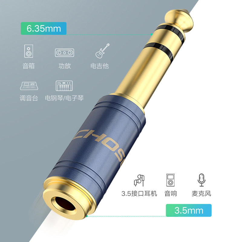 秋叶原6.5转3.5音频线转接头6.5mm公转3.5mm母音频转换头钢琴吉他