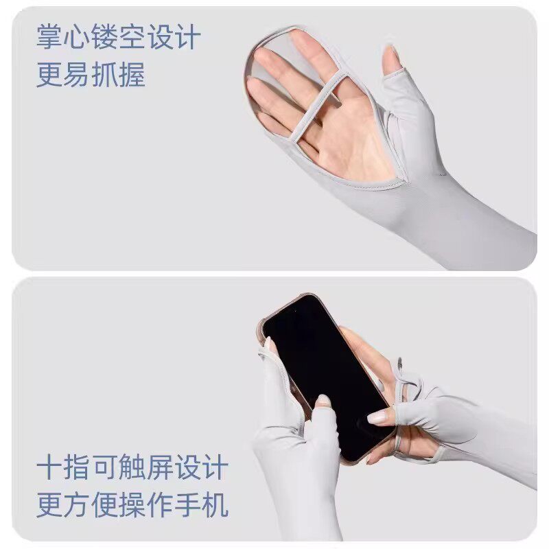 冰丝防晒袖套女夏季防紫外线骑行开车防滑薄长款护臂冰袖一体手套