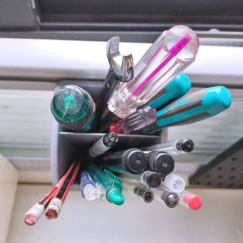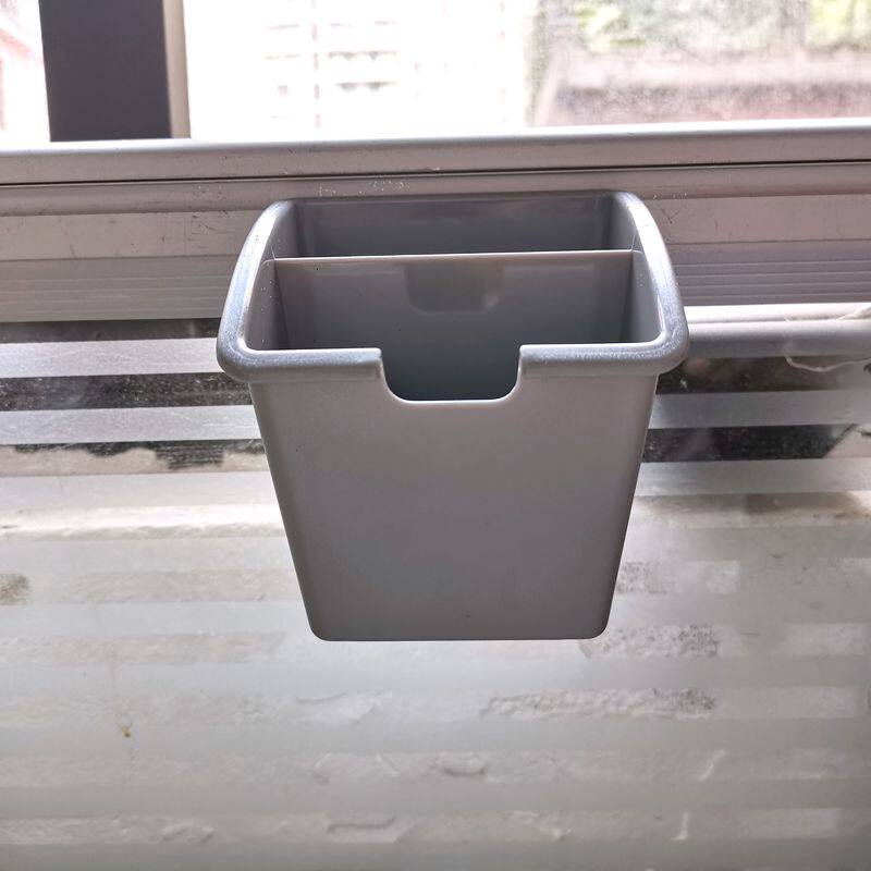 两格工位笔筒,屏风下挂缝收纳盒,办公桌隔断挂槽缝水泥灰色笔筒