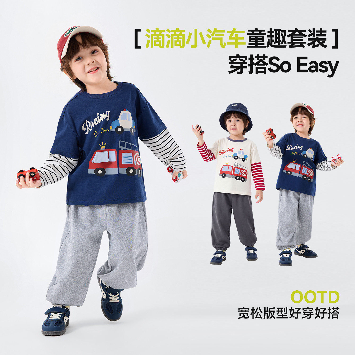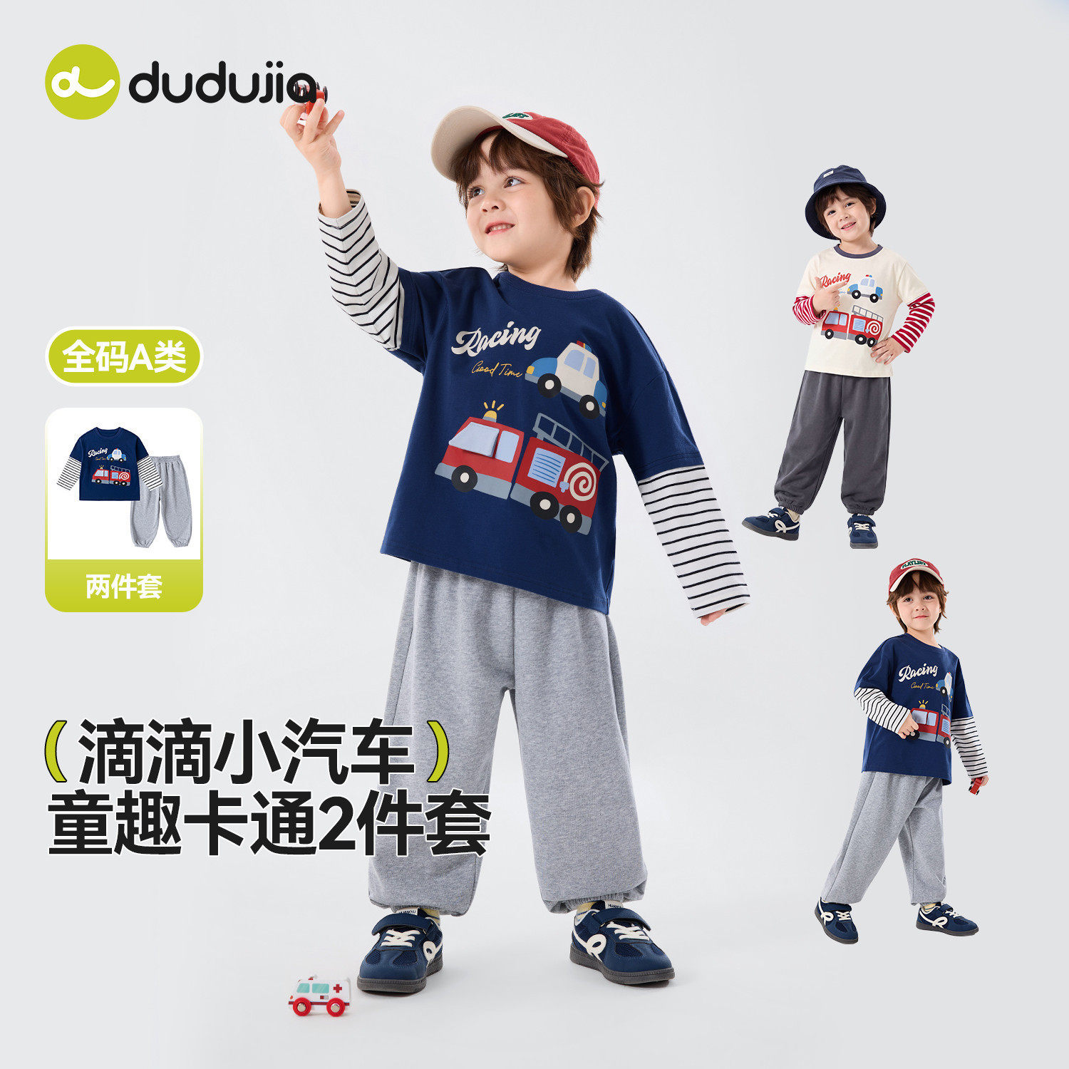 【挖掘机系列】嘟嘟家男童套装儿童春季T恤裤子女童春撞宝宝童装