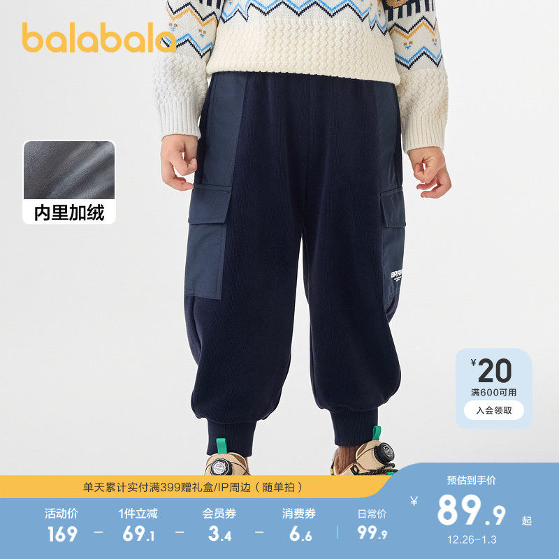 巴拉巴拉儿童加绒长裤男童秋冬装灯芯绒工装裤子加绒童装保暖加厚