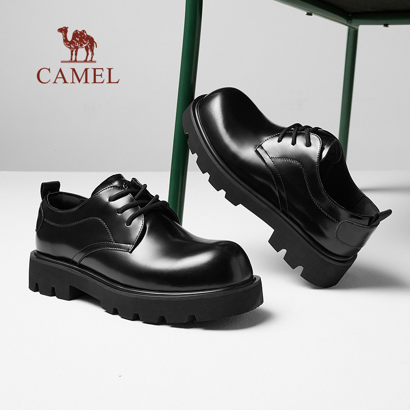 骆驼厚底亮皮德比鞋