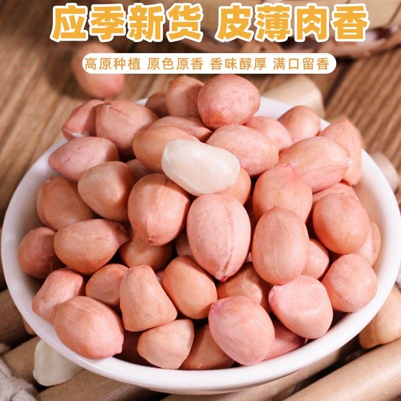 新鲜红皮带壳生花生四粒红花生米农家自种晒干货高产花生红皮花生