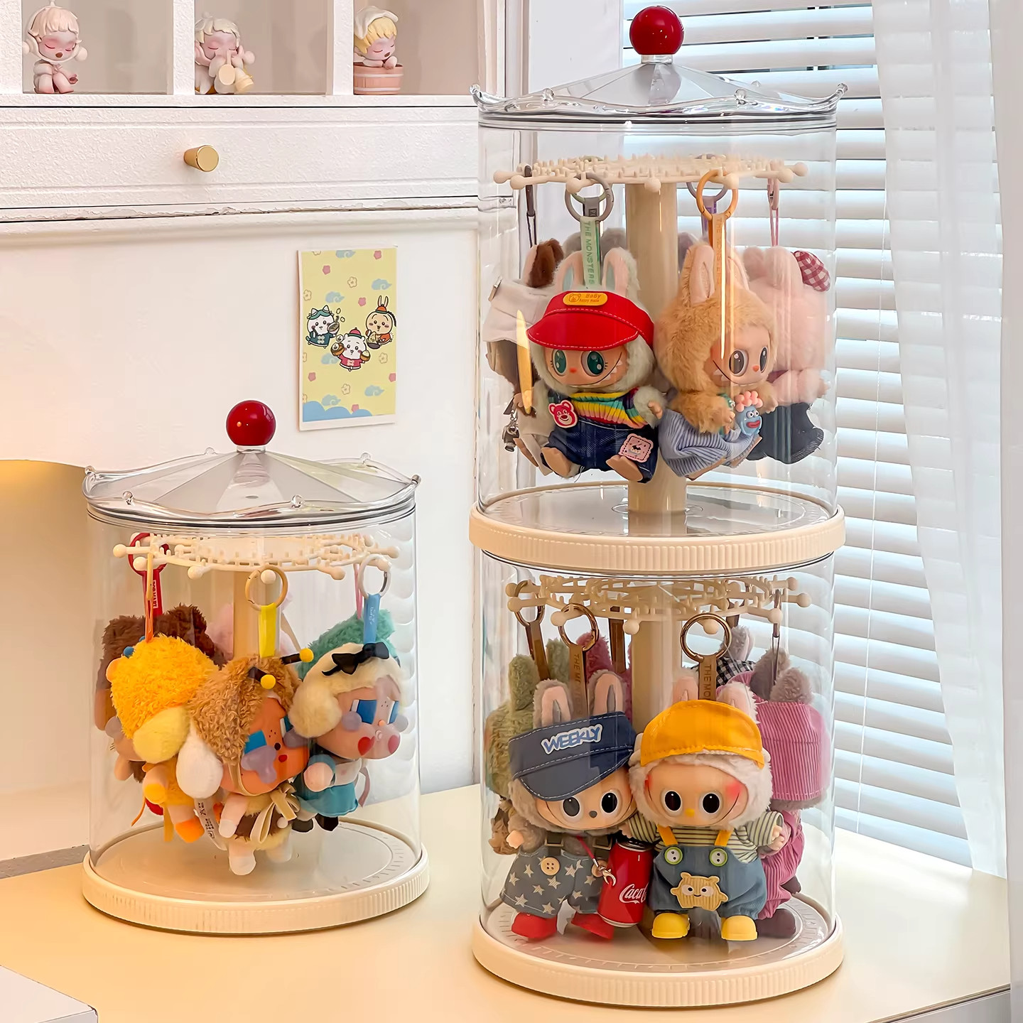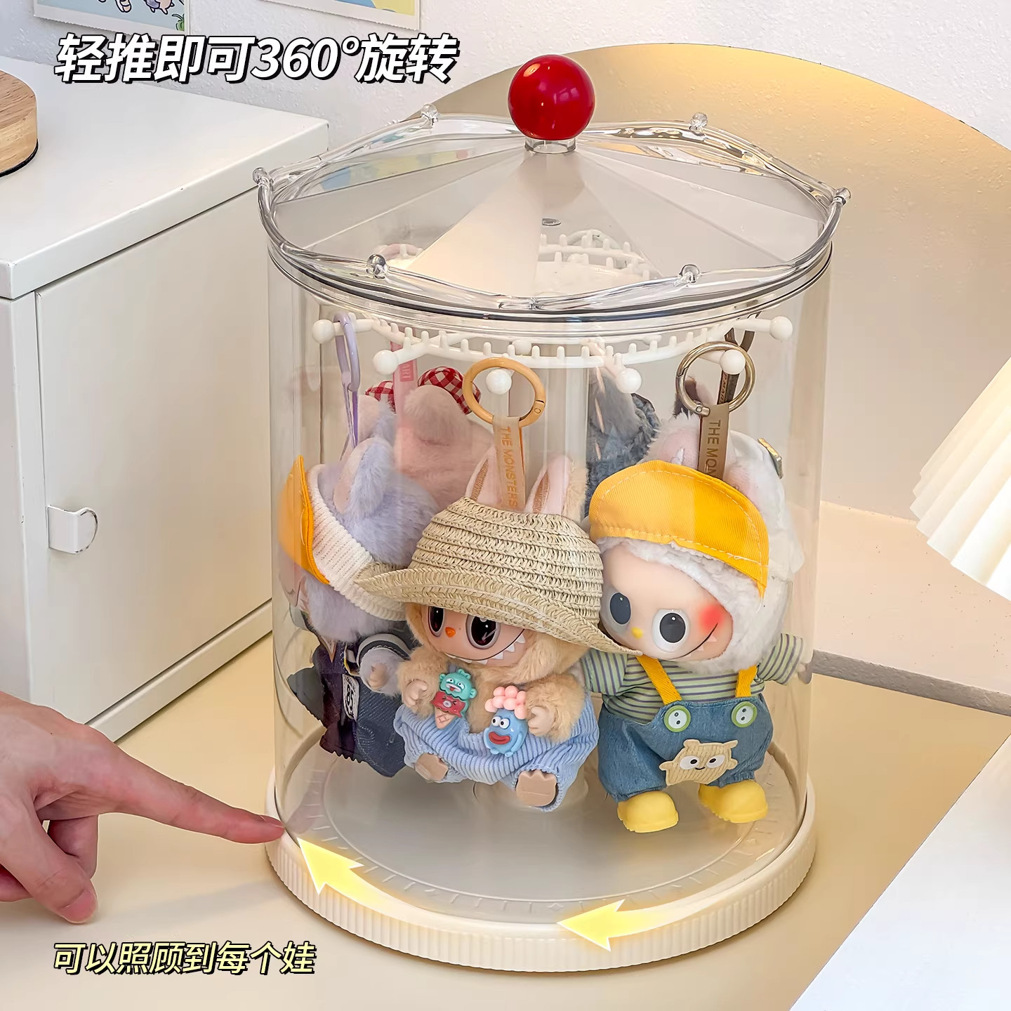 labubu展示盒旋转拉布布挂件收纳盒子透明毛绒挂件玩偶娃娃防尘罩
