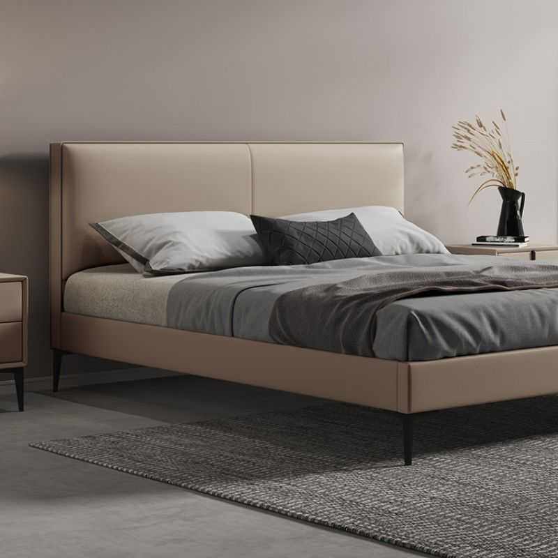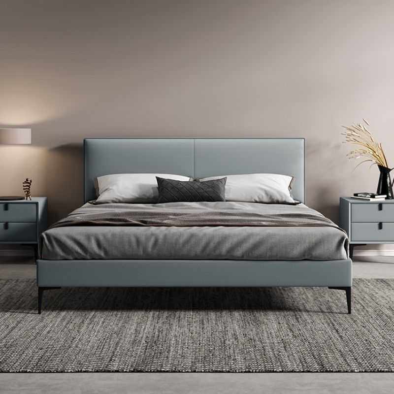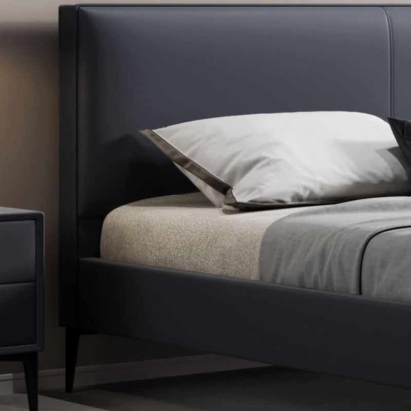 简约现代主卧床黑色皮艺床意式极简床样板间轻奢风实木软包网红床