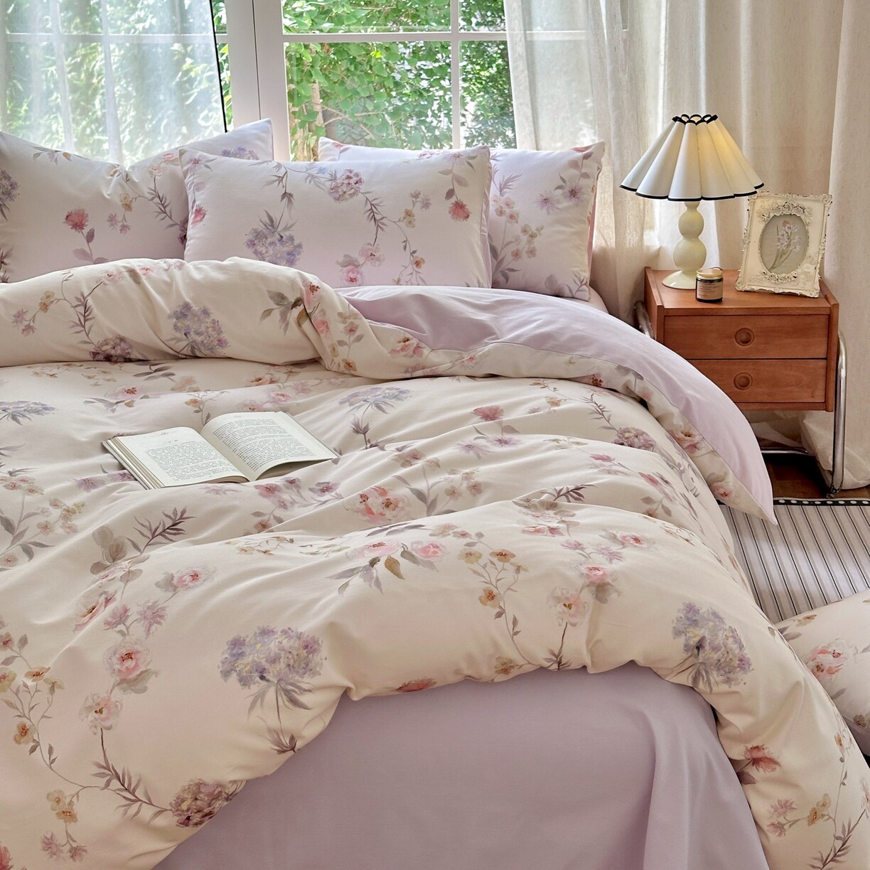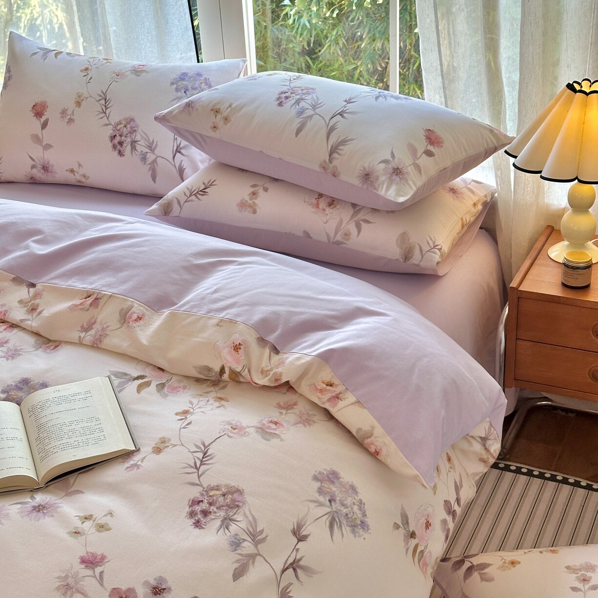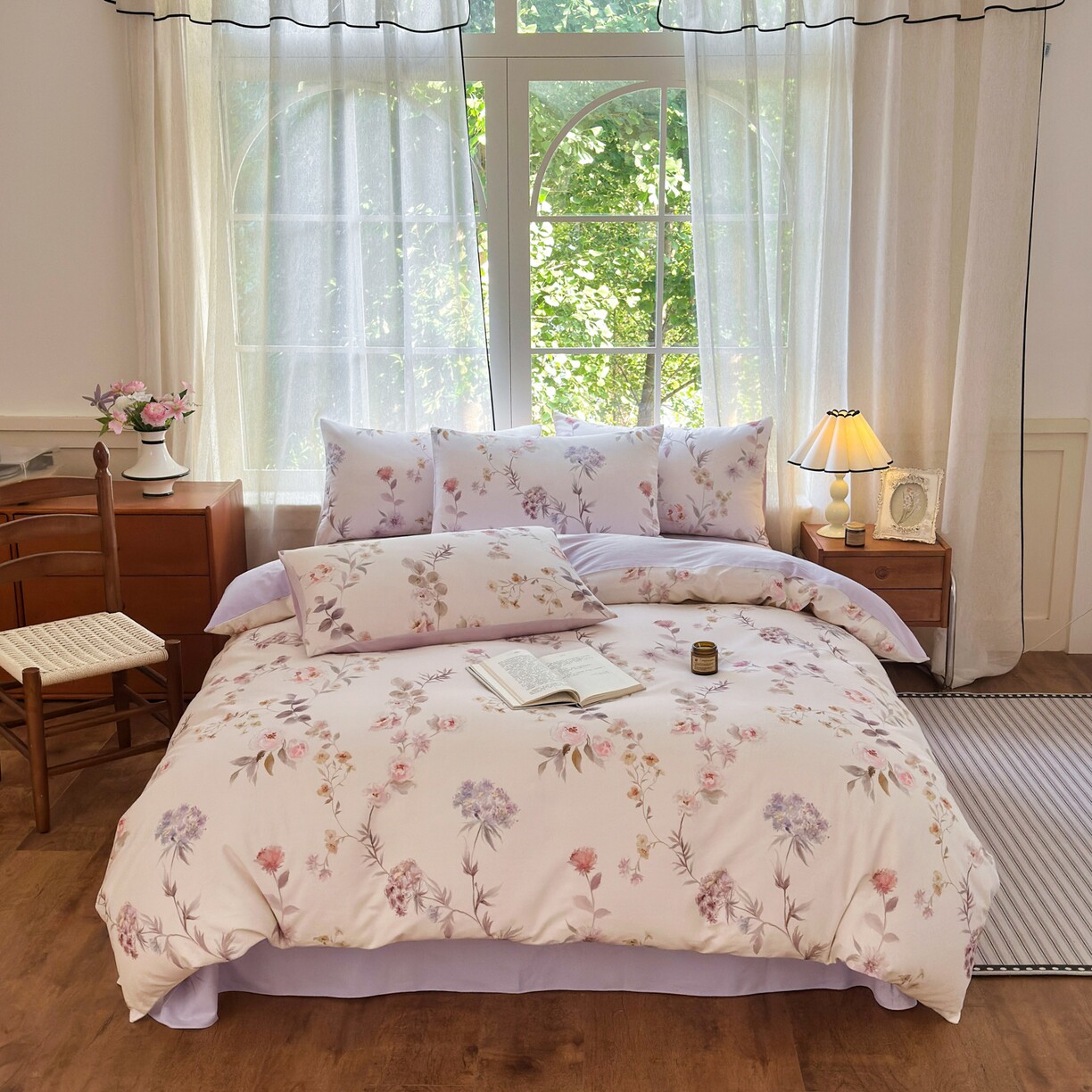 A类双层纱床上四件套纯棉全棉新款田园床单件被套被罩宿舍三件套4