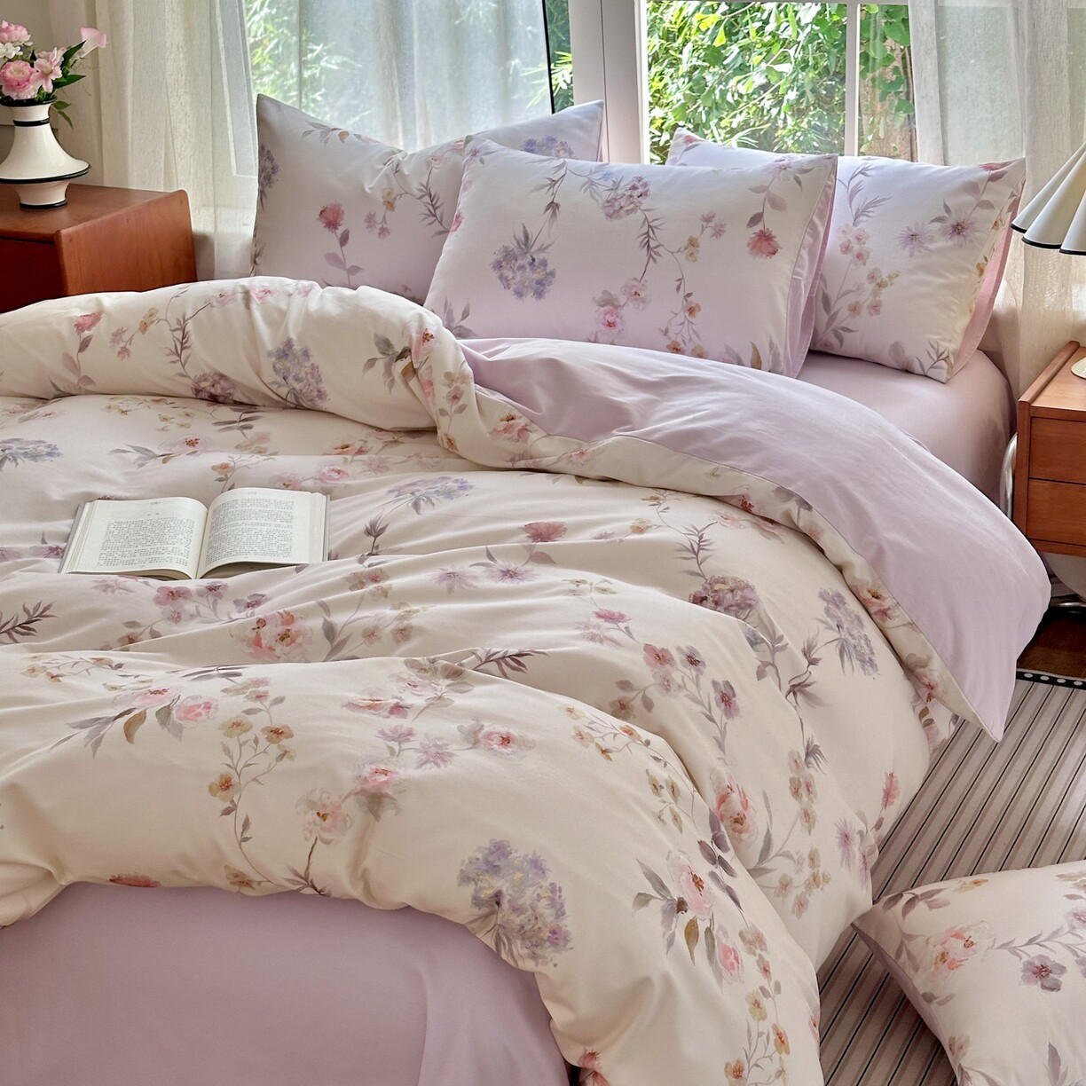 全棉纯棉磨毛四件套床品套件花卉印花被套床单枕套四季通用简约