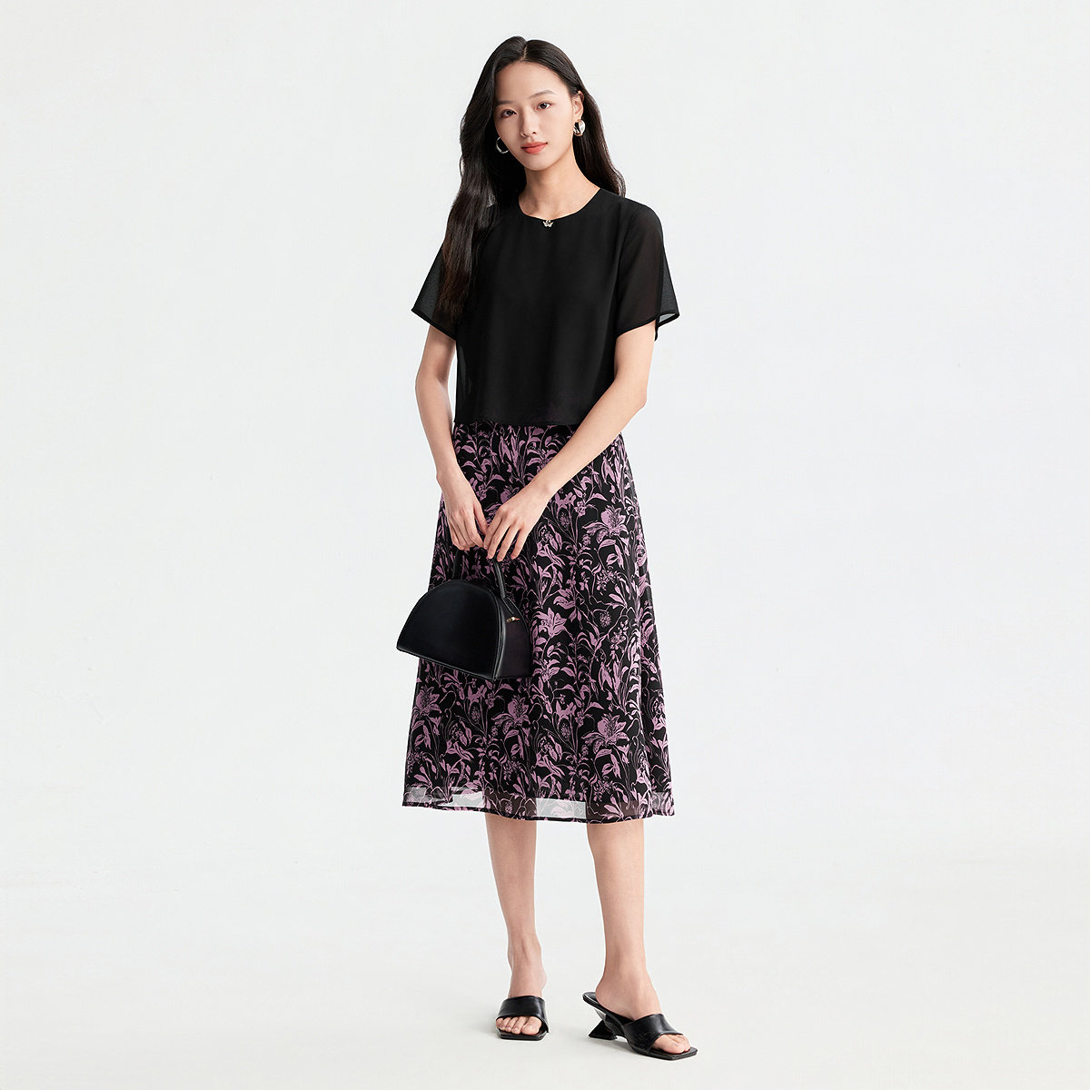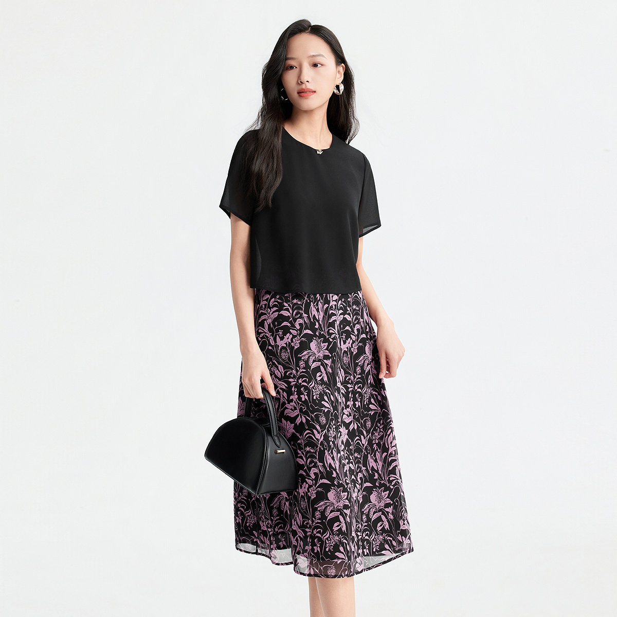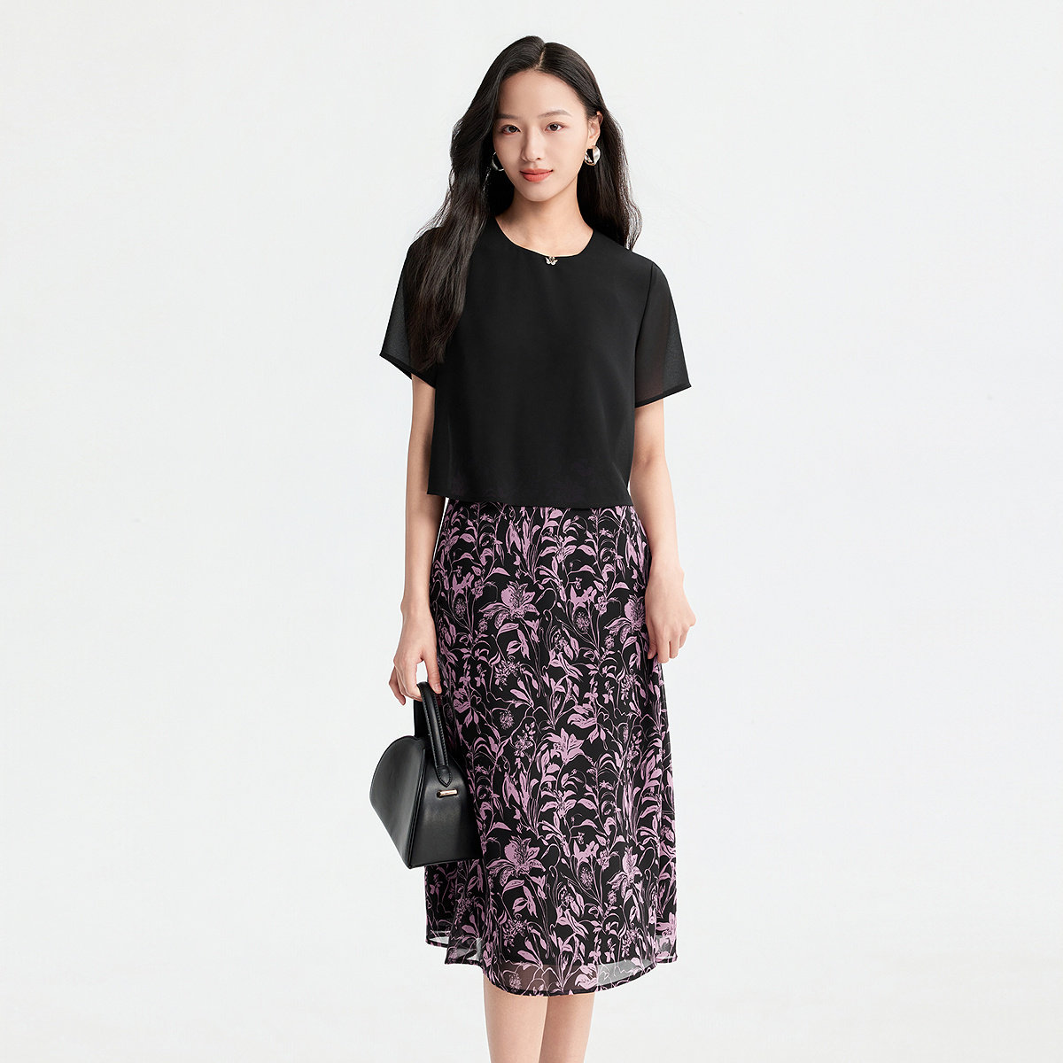 FINITY菲妮迪假两件连衣裙2026年夏季新款拼接设计感网纱长裙女装
