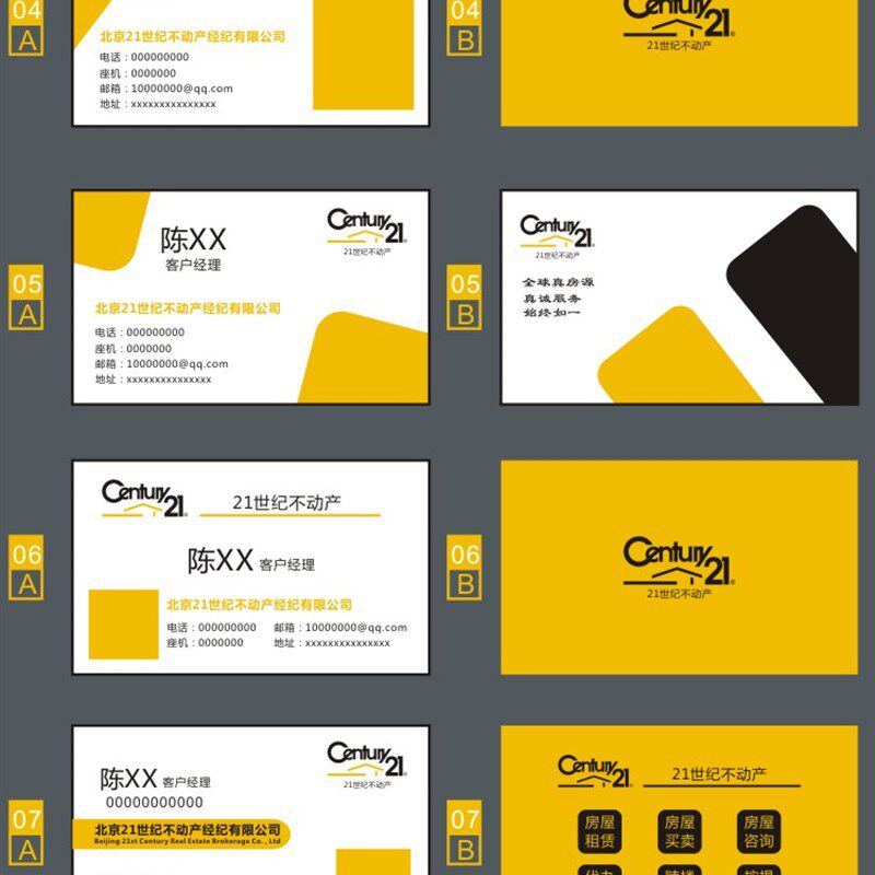 世纪动产名片制作卖房中介置业顾问防水名片照片