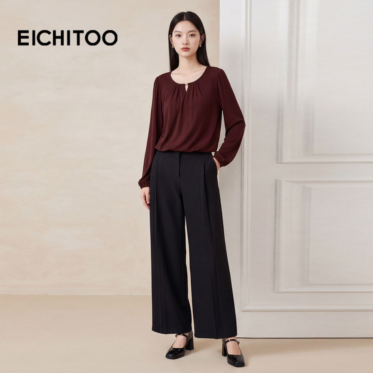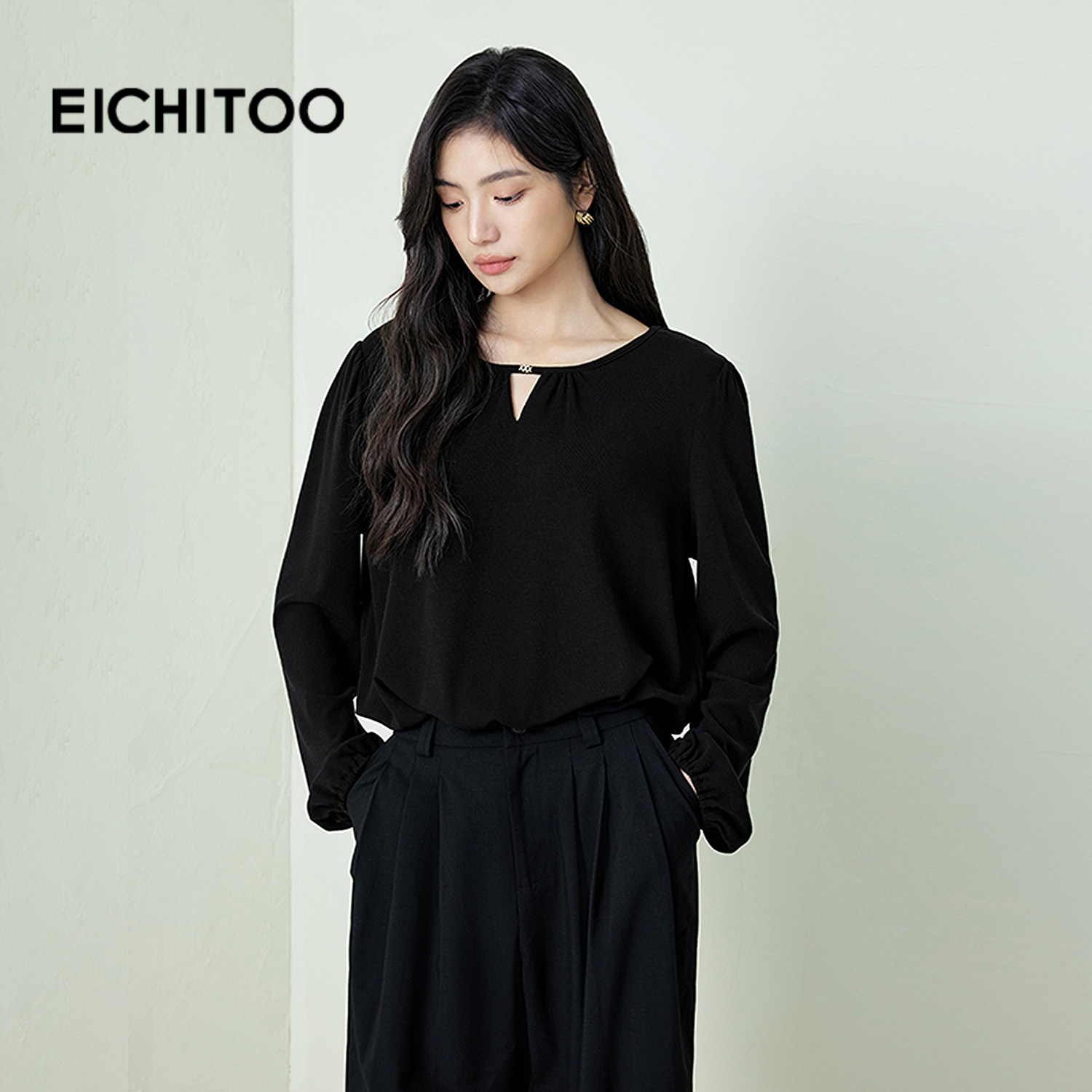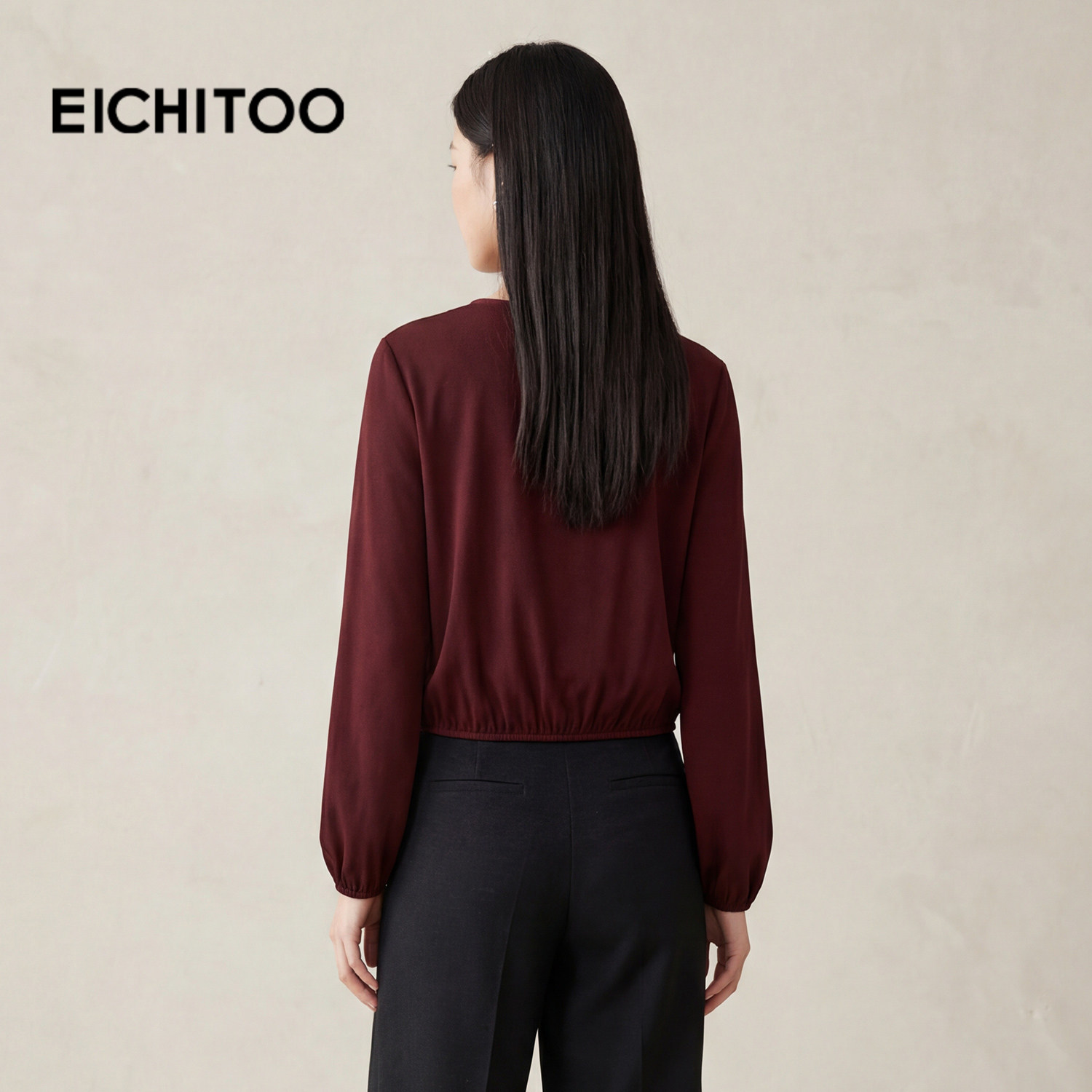 三福长袖上衣2025新款秋季圆领修身针织衫简约纯色内搭打底衫女装