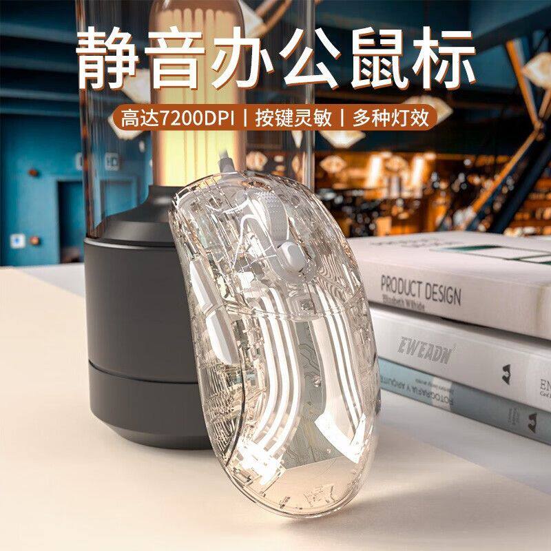 前行者Q8透明机械鼠标有线静音宏编程游戏电竞电脑笔记本办公通用
