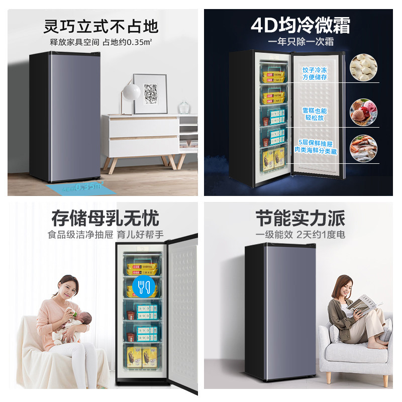 荣事达立式冰柜家用小型冷冻小冰箱储奶母乳侧开抽屉宿舍租房用