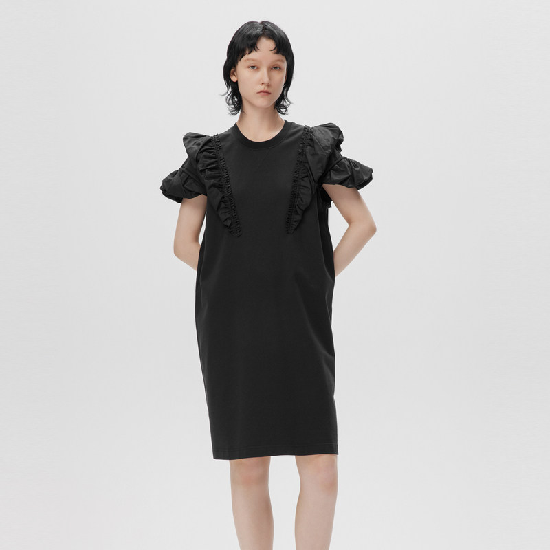 JNBY/江南布衣折扣春夏造型感无袖荷叶边连衣裙女休闲宽松纯棉