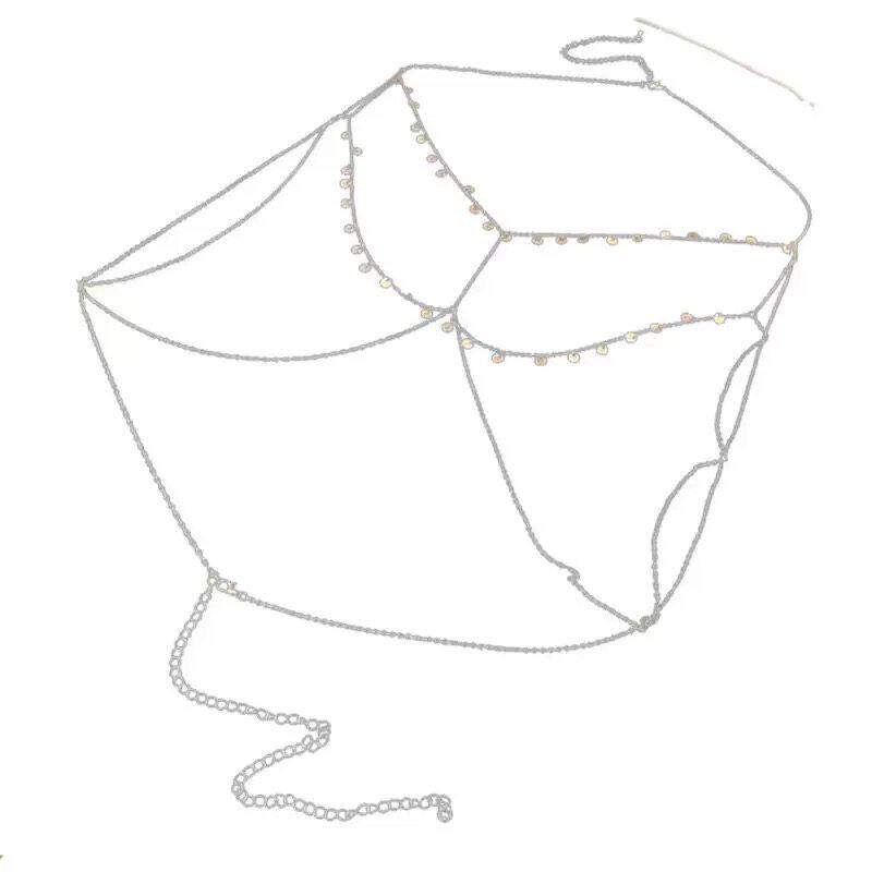 新款胸链身体链锁骨链纯欲风立体项链女性感奢小众配饰金色银色