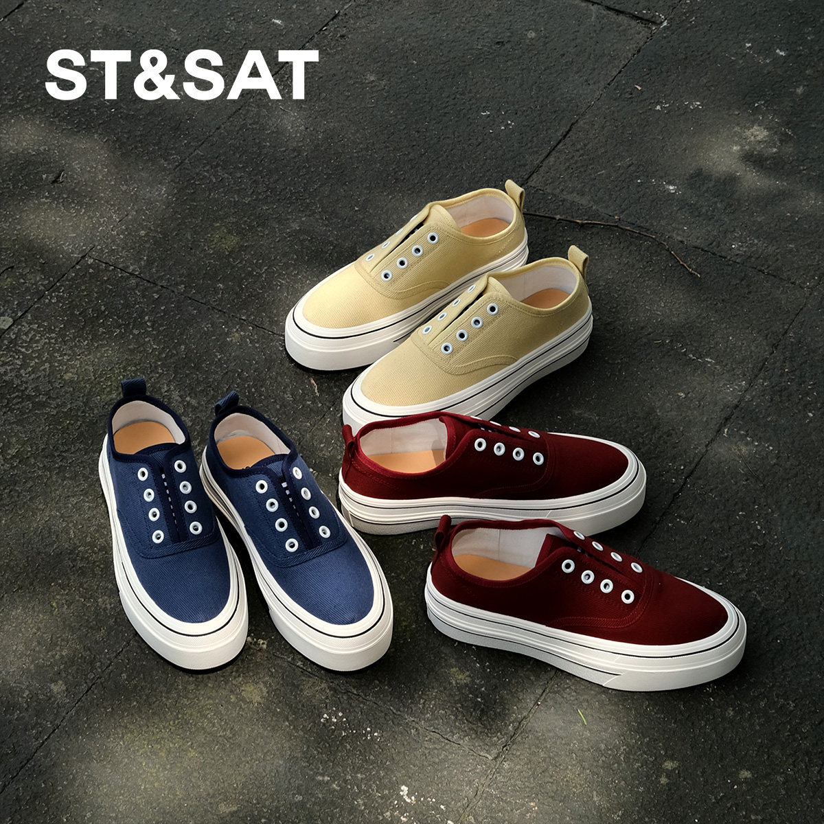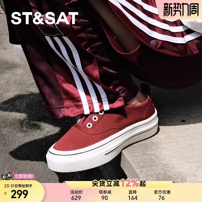 星期六牛皮鞋垫厚底帆布鞋女2025秋季新款透气乐福鞋一脚蹬休闲鞋