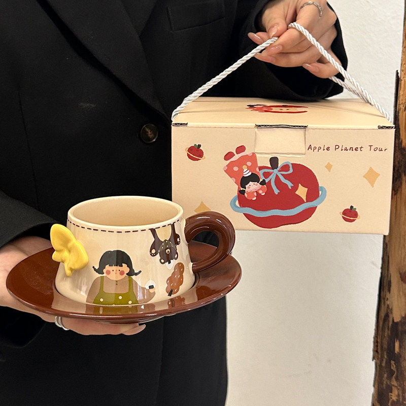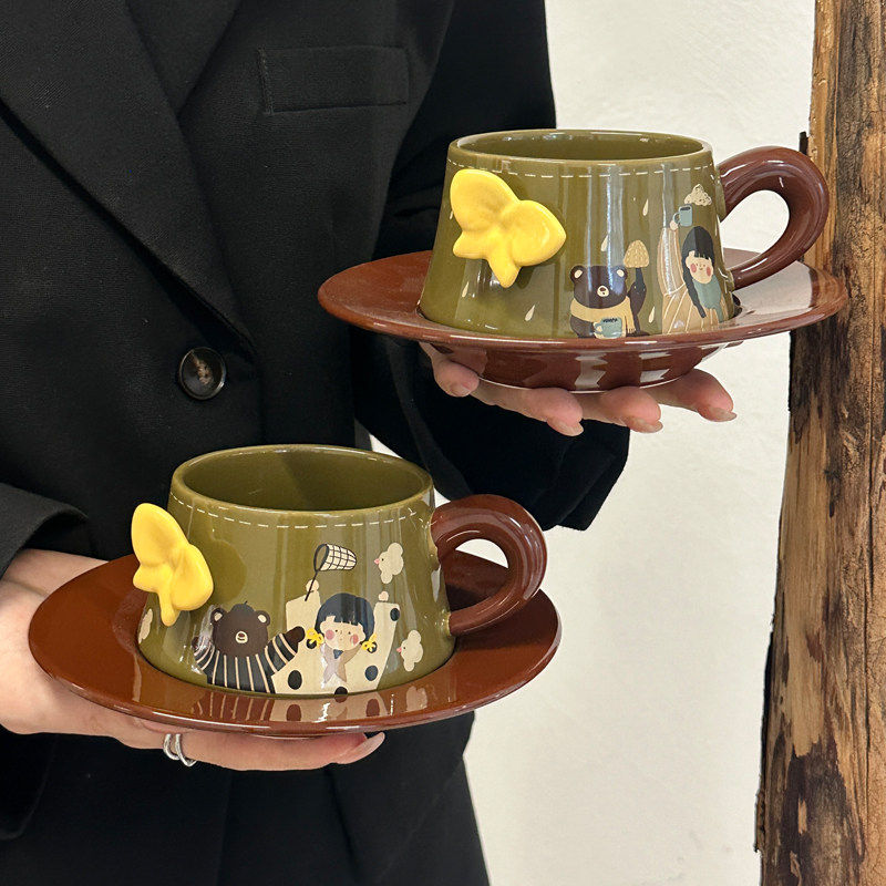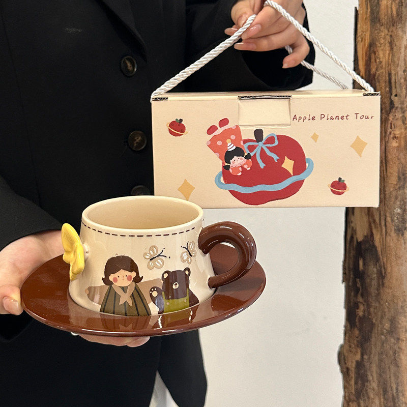 高颜值复古蝴蝶陶瓷咖啡杯碟套装下午茶拿铁马克杯伴手礼礼盒精致