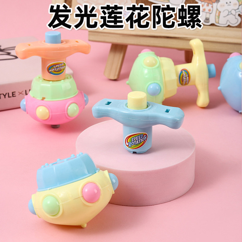 夜市儿童发光莲花陀螺玩具新款卡通旋转弹射益智互动吸引安全