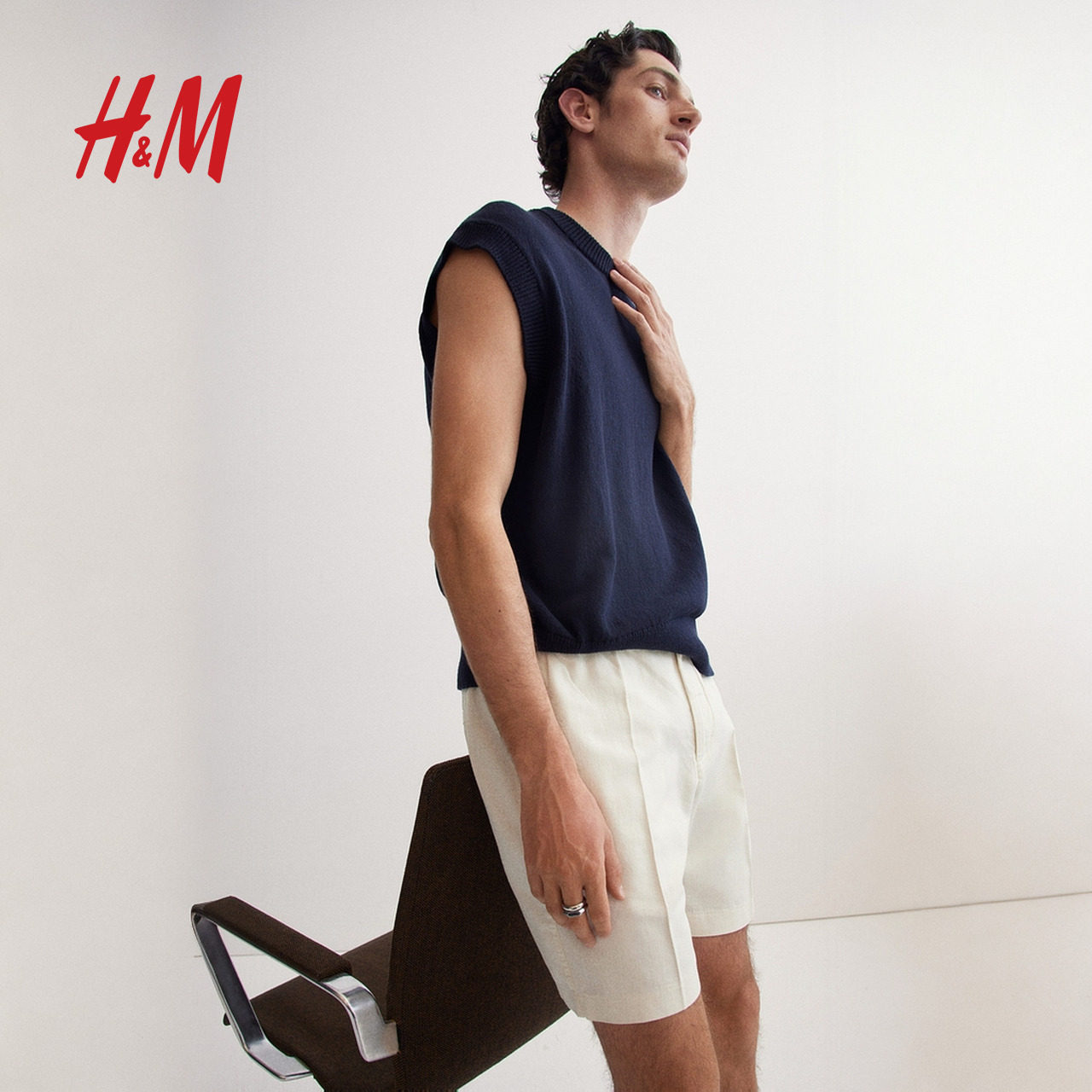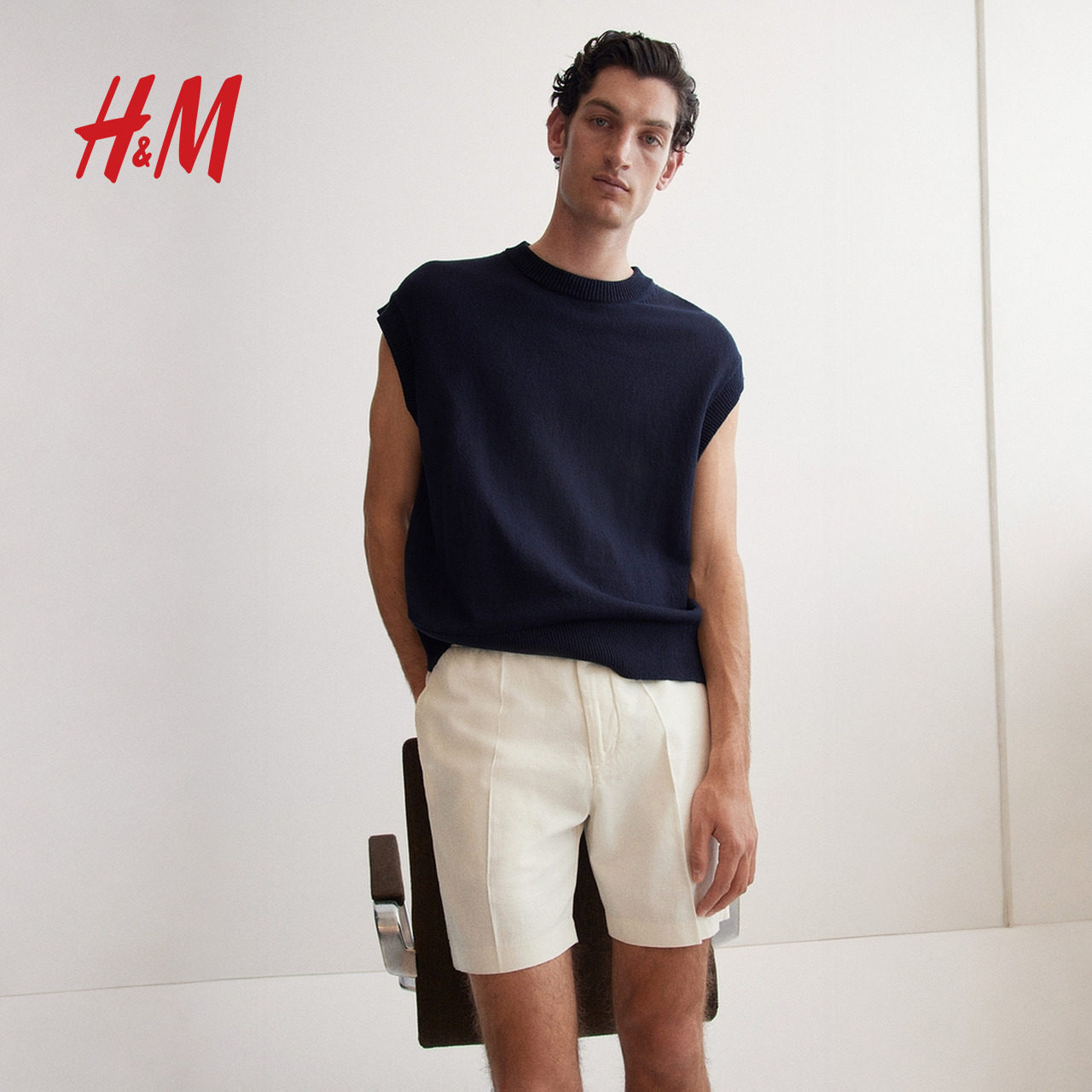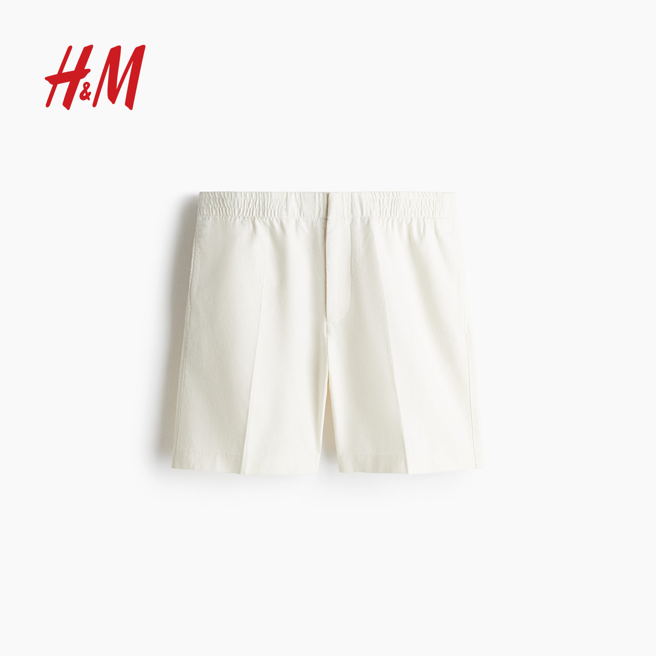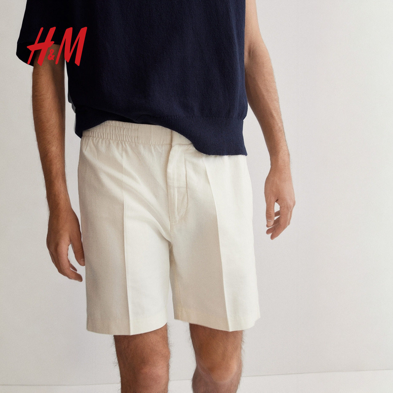 HM男装休闲裤春季老钱风休闲裤标准版型亚麻混纺潮流短裤1265974