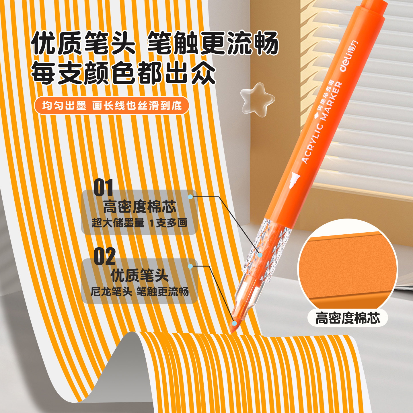 得力丙烯马克笔层叠盒软头儿童可水洗小学生美术专用彩笔不透色可叠色幼儿园画笔48色绘画24彩色笔炳稀笔芯