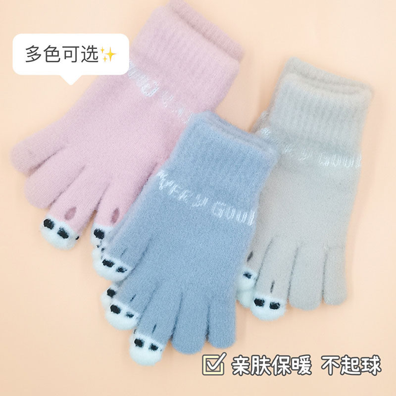 手套女士保暖可爱毛线针织写字玩手机秋冬卡通学生百搭款露指触屏
