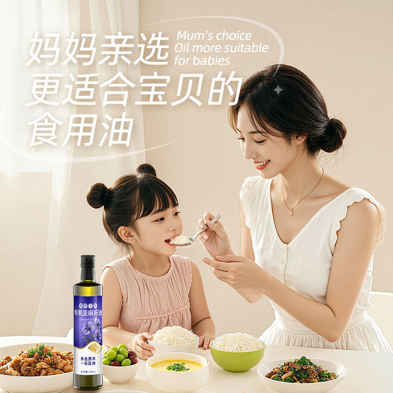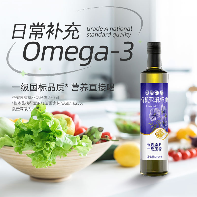 有机亚麻籽油冷榨一级热炒油儿童孕妇食用油官方正品家用玻璃瓶装
