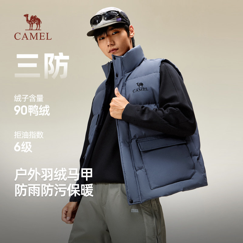 骆驼男士羽绒背心青少年冬季无袖坎肩情侣工装羽绒马甲女款外穿