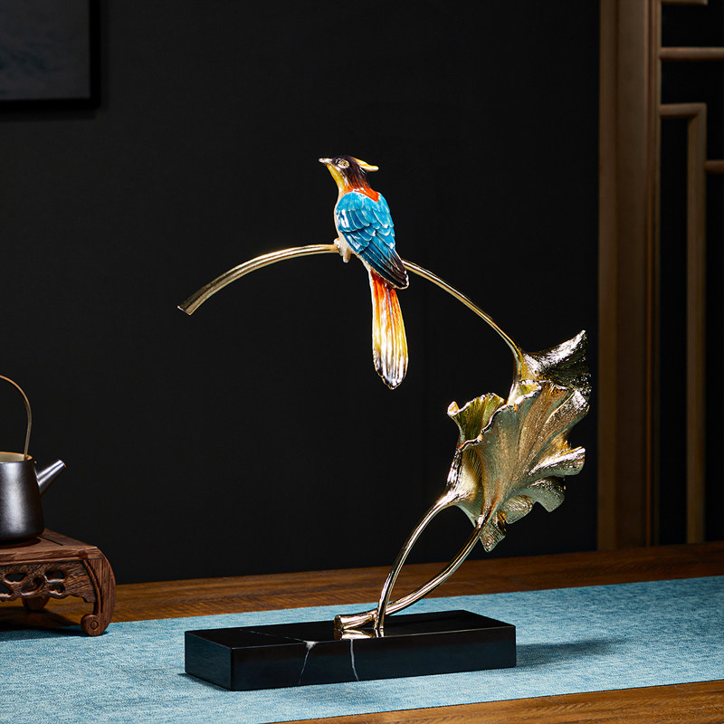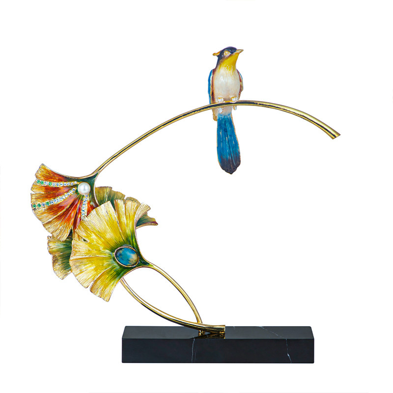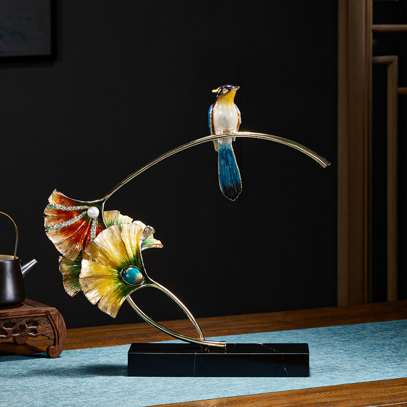 喜上枝头桌面摆件珐琅彩工艺喜鹊客厅家用餐厅高端大气家居装饰品
