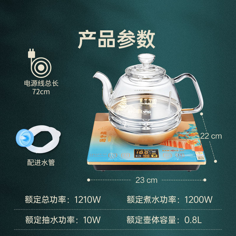 金灶H7颐和园版全自动底部上水电热水壶家用玻璃烧水壶泡茶专用