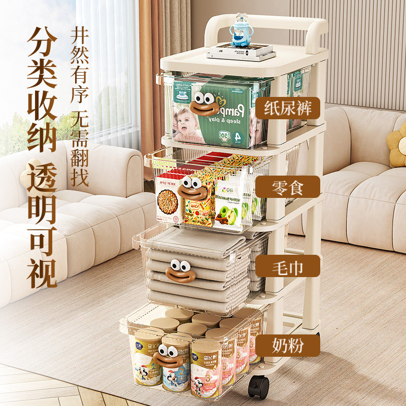 小推车置物架落地可移动零食收纳架家用多层客厅玩具抽屉式储物柜