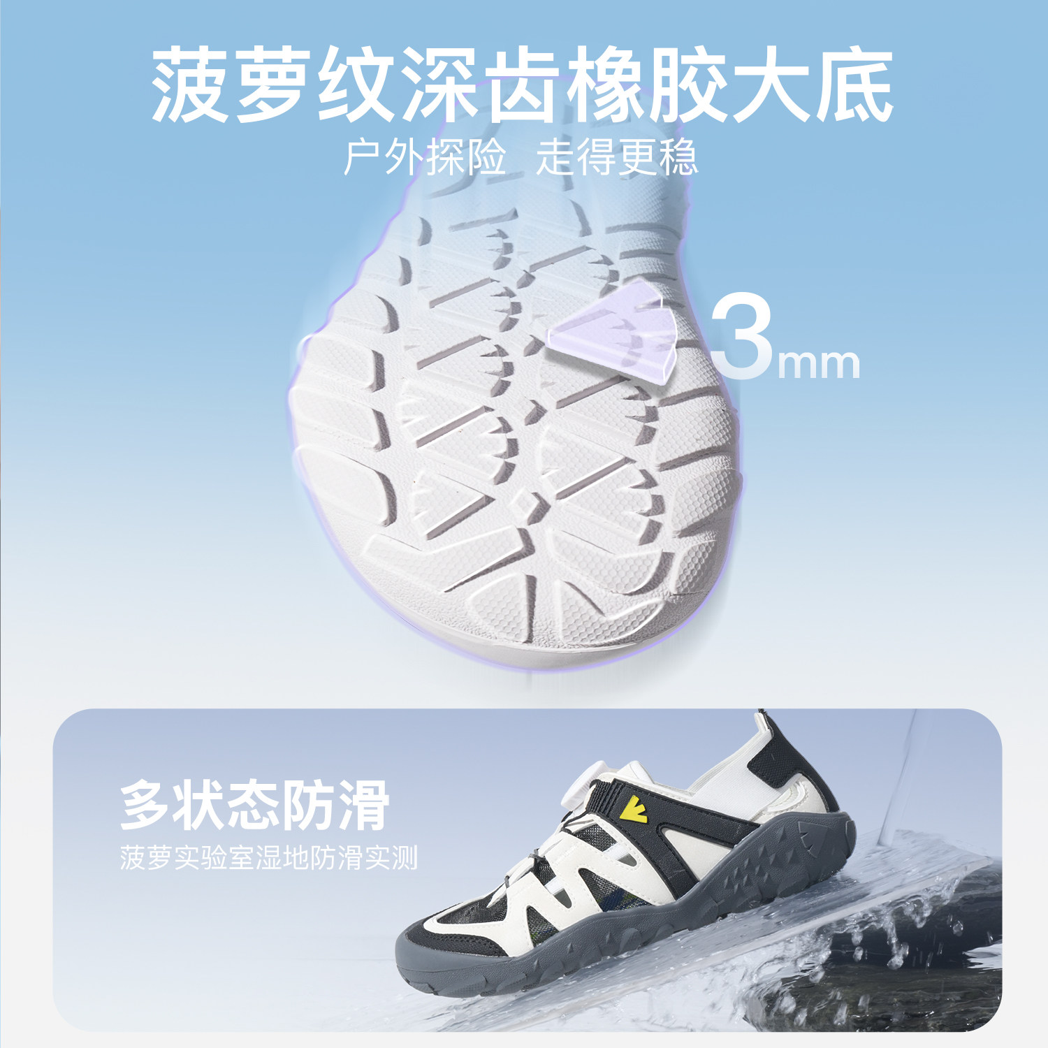 宽楦赤足|水陆两穿|排水速干|耐磨防滑