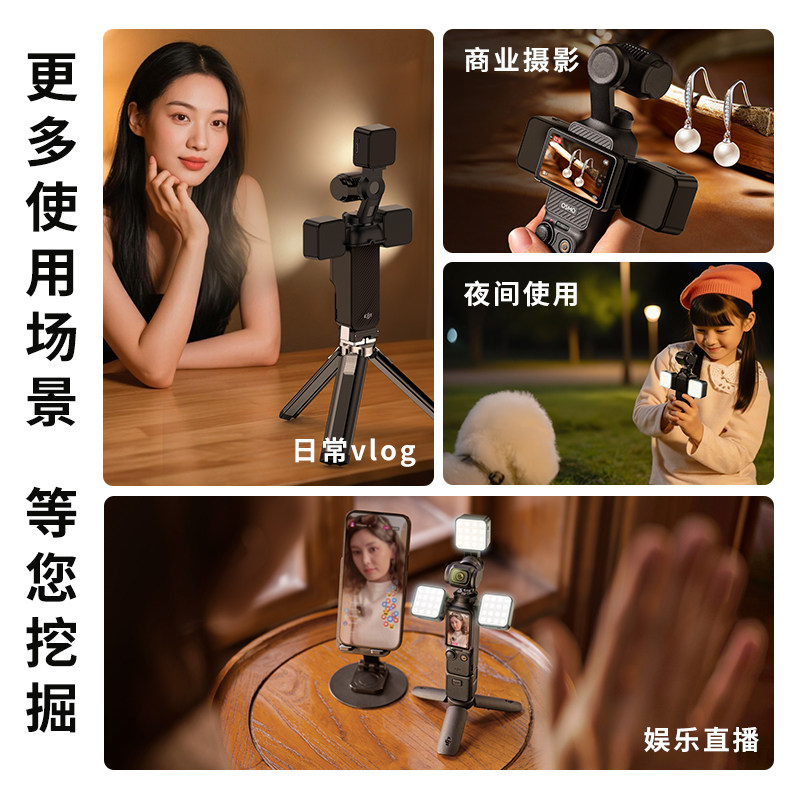 MAMEN慢门适用DJI大疆pocket3补光灯运动相机磁吸口袋便携式快拆补光灯vlog拍摄神器补光配件拍摄打光灯