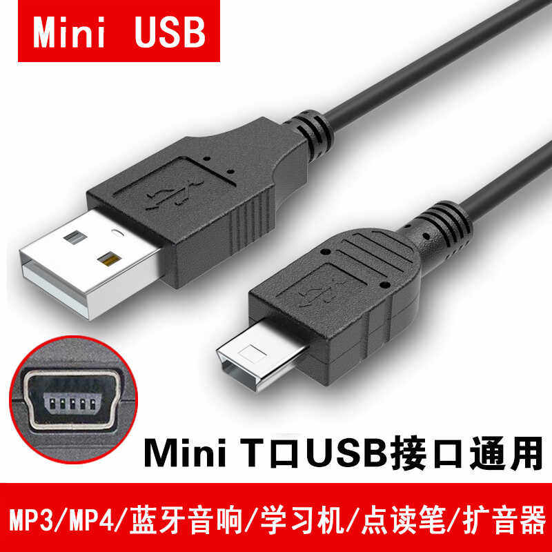 mp3数据线mini usb导航行车记录仪蓝牙音箱老人机相机T型充电口线