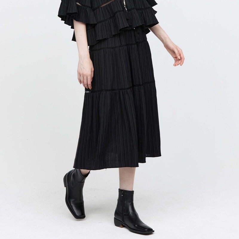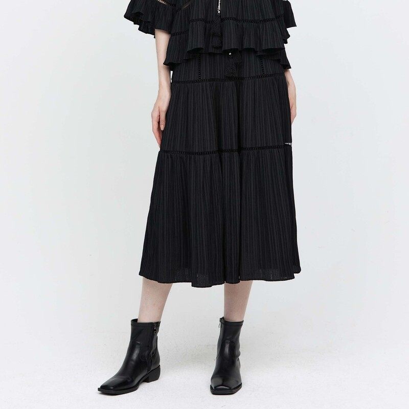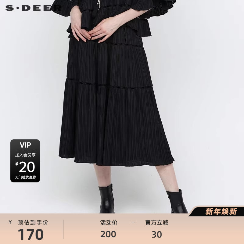 sdeer圣迪奥女装新中式套装松紧肌理流苏A字伞裙S24361106