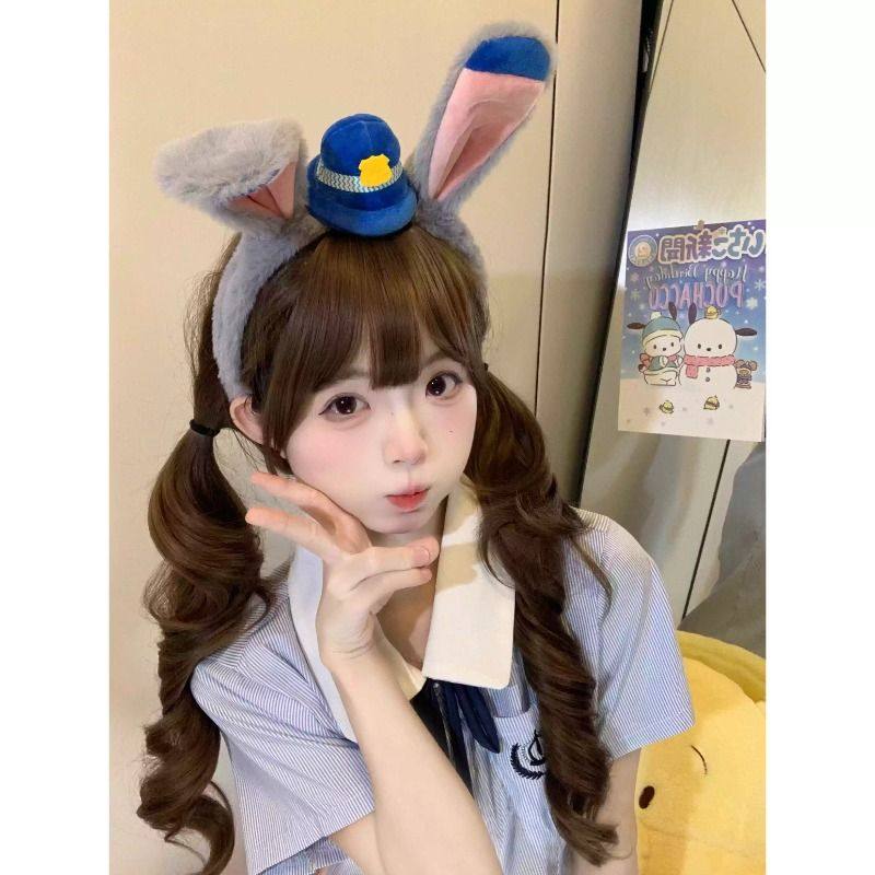 小熊摘星星 | 朱迪兔子警官cos卡通礼帽徽章圆顶兔耳朵发饰游乐园