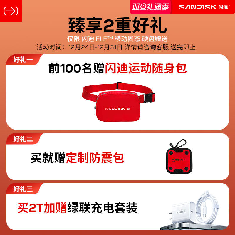 闪迪移动固态硬盘新元素ELE手机电脑笔记本1tb高速2T西数移动硬盘