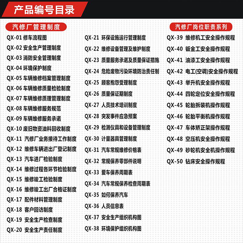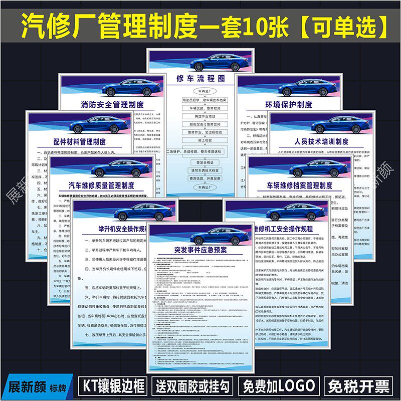汽修厂规b章制度牌 修理厂操作规程 汽车维修质量人员培训管理制
