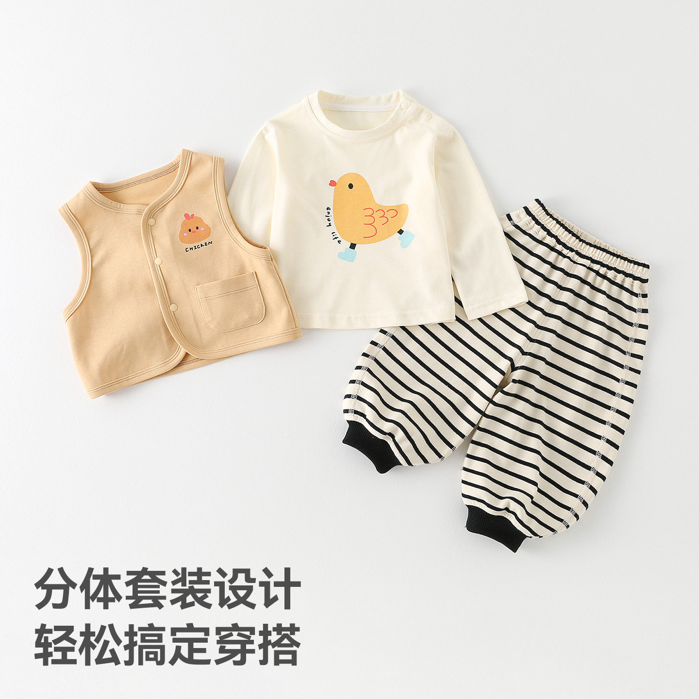 贝肽斯儿童套装2026春秋新款婴儿衣服男女宝宝马甲T恤裤子三件套S