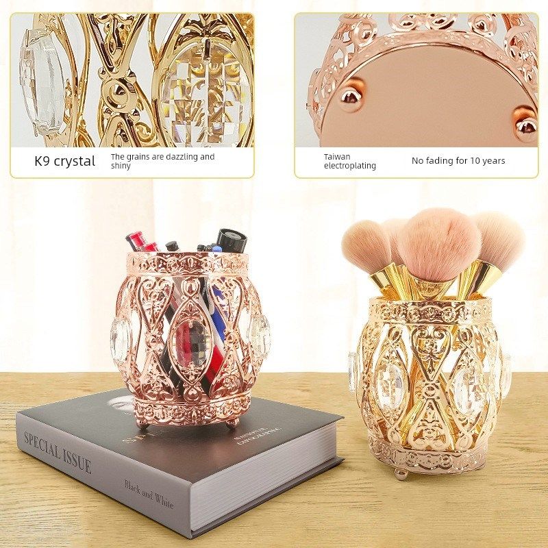 热卖欧式水晶笔筒化妆刷收纳筒 眉笔梳子整理收纳盒 水晶摆件
