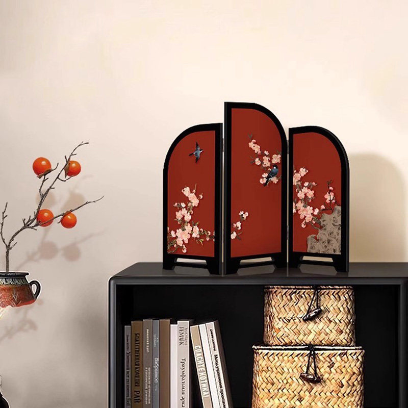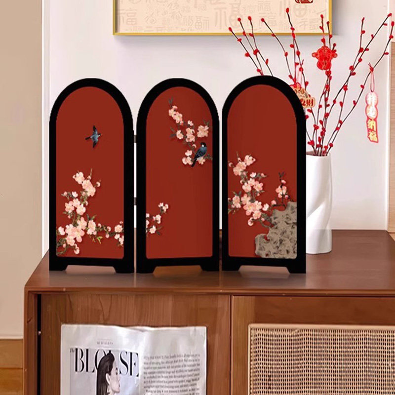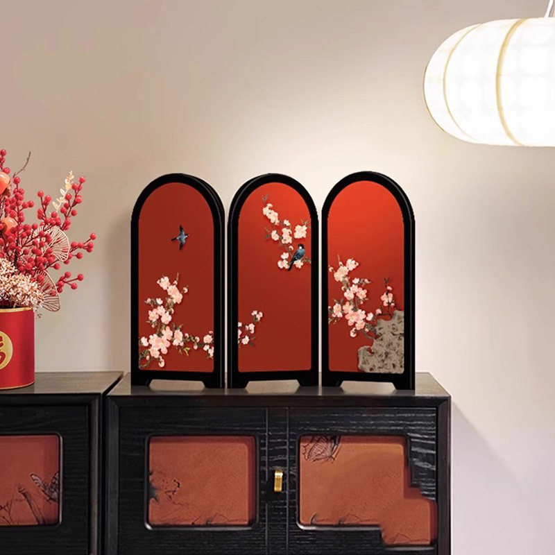 喜上眉梢小屏风红色桌面摆件新中式客厅玄关高级感小众家居装饰品