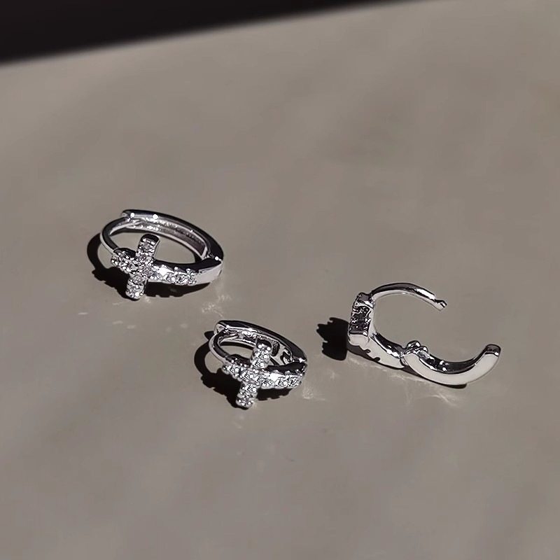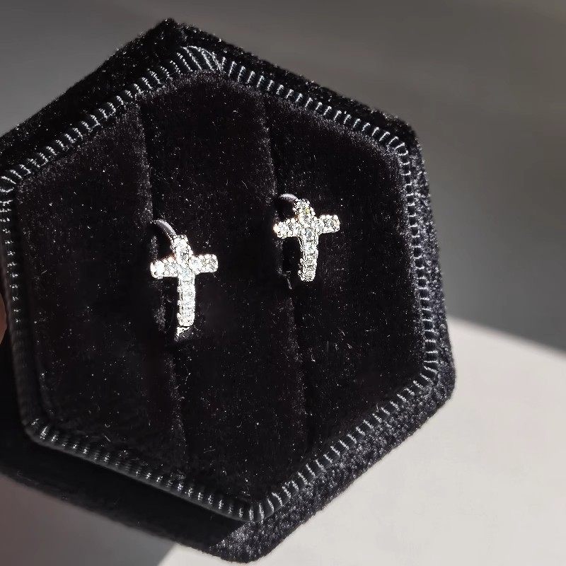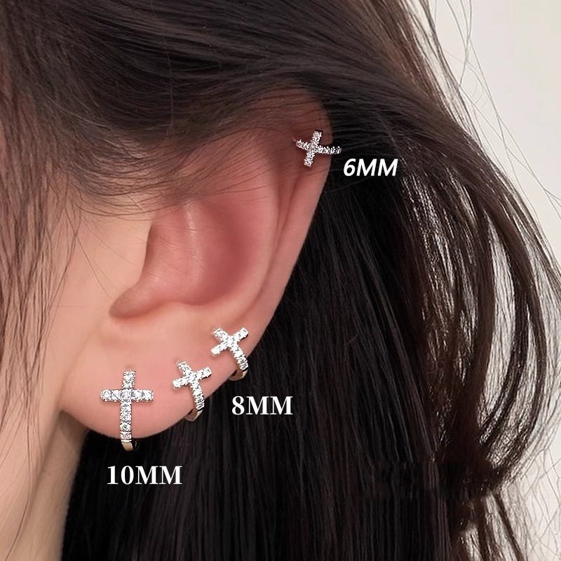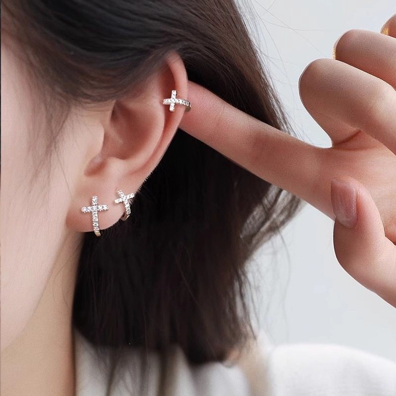 十字架小耳骨钉女925纯银针养耳洞睡觉免摘满钻耳环耳圈耳扣水滴