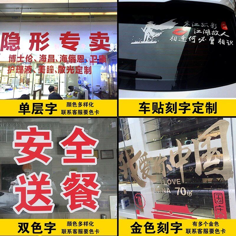玻璃门贴字不干胶广告贴纸刻字定制办公室腰线防撞条贴单透灯箱布
