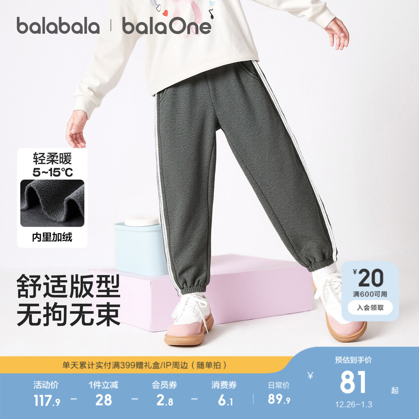 巴拉巴拉童装儿童加绒裤子女童2025冬装新款保暖束脚加厚运动长裤