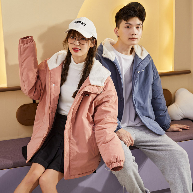 唐狮冬季时尚保暖情侣外套短款夹克男女厚外套冬装上衣休闲青少年