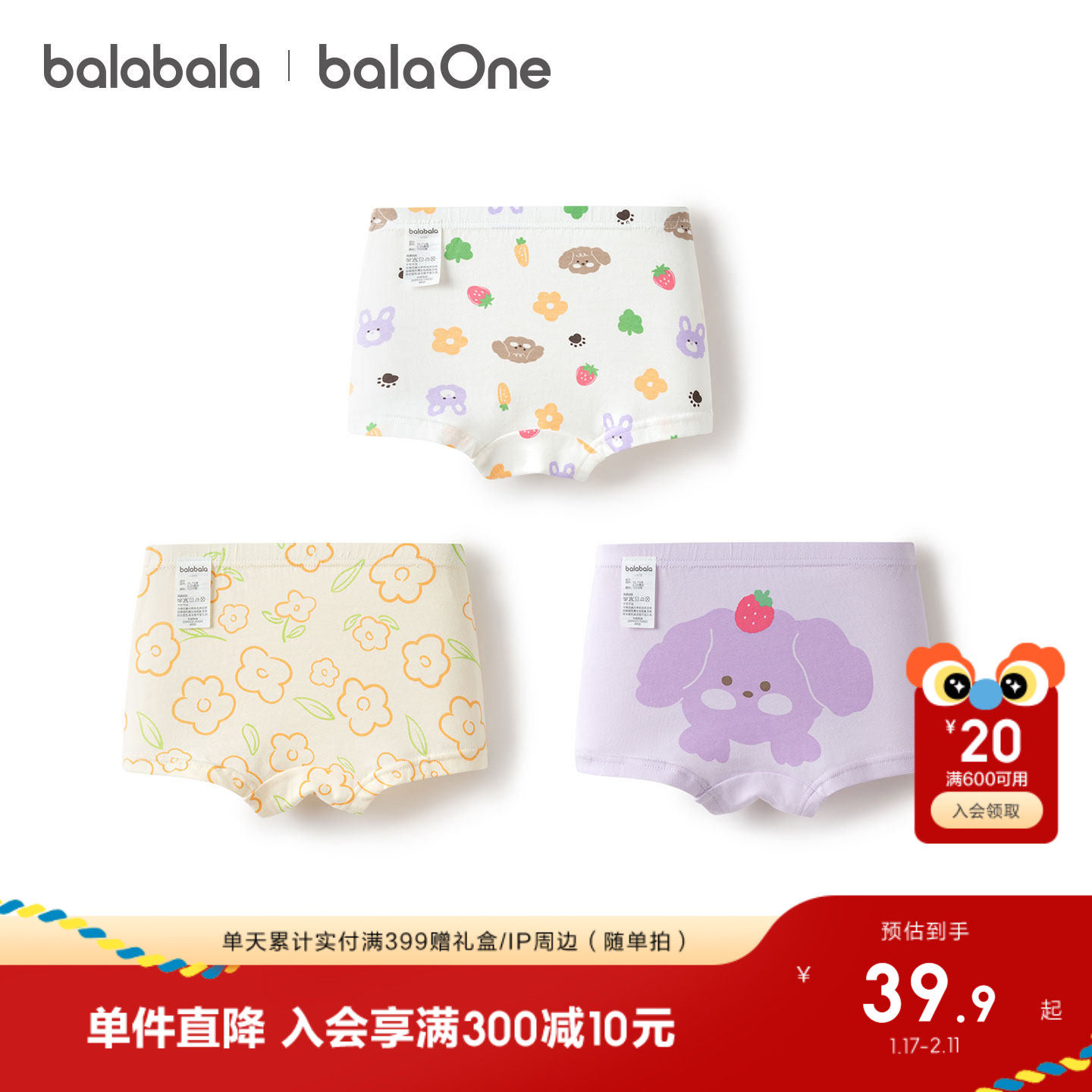 【balaOne】巴拉巴拉儿童内裤棉男童不夹pp抗菌裆四角短裤三条装